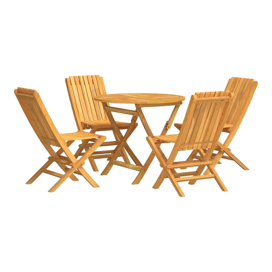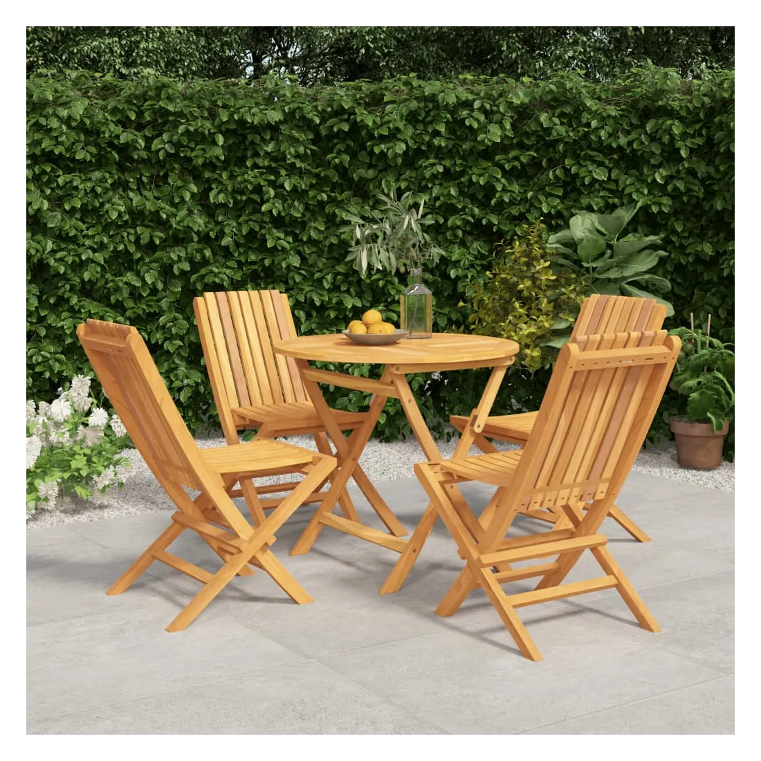 Détendez-vous et profitez d'un thé et de repas agréables avec votre famille et vos amis grâce à cet ensemble de salle à manger de jardin en bois classique ! Bois de teck massif : l'ensemble de salle à manger est fabriqué en bois de teck massif. Le bois de teck massif est un matériau naturel magnifique. Il a été chevronné, séché au four, puis sablé finement pour lui donner une apparence très lisse. Le bois de teck est connu pour sa résistance exceptionnelle et sa résistance aux intempéries.Fonction pliable : l'ensemble de salle à manger d'extérieur peut être plié pour économiser de l'espace lorsqu'il n'est pas utilisé.Expérience confortable : le dossier de la chaise de jardin vous offre un excellent soutien, offrant une expérience confortable optimale.Dessus de table robuste : le dessus de table robuste de la table à manger est parfait pour placer des repas, des boissons, des vases, des bols de fruits ou d'autres objets décoratifs.Trou pour parasol : le dessus de table est doté d'un trou pour parasol, ce qui vous permet de fixer facilement un parasol pour créer un coin ombragé.Design à lattes : la chaise à manger d'extérieur conçue avec un design à lattes est simple et intemporelle. Remarque :Pour que vos meubles d'extérieur restent beaux, nous vous recommandons de les protéger avec une housse imperméable.