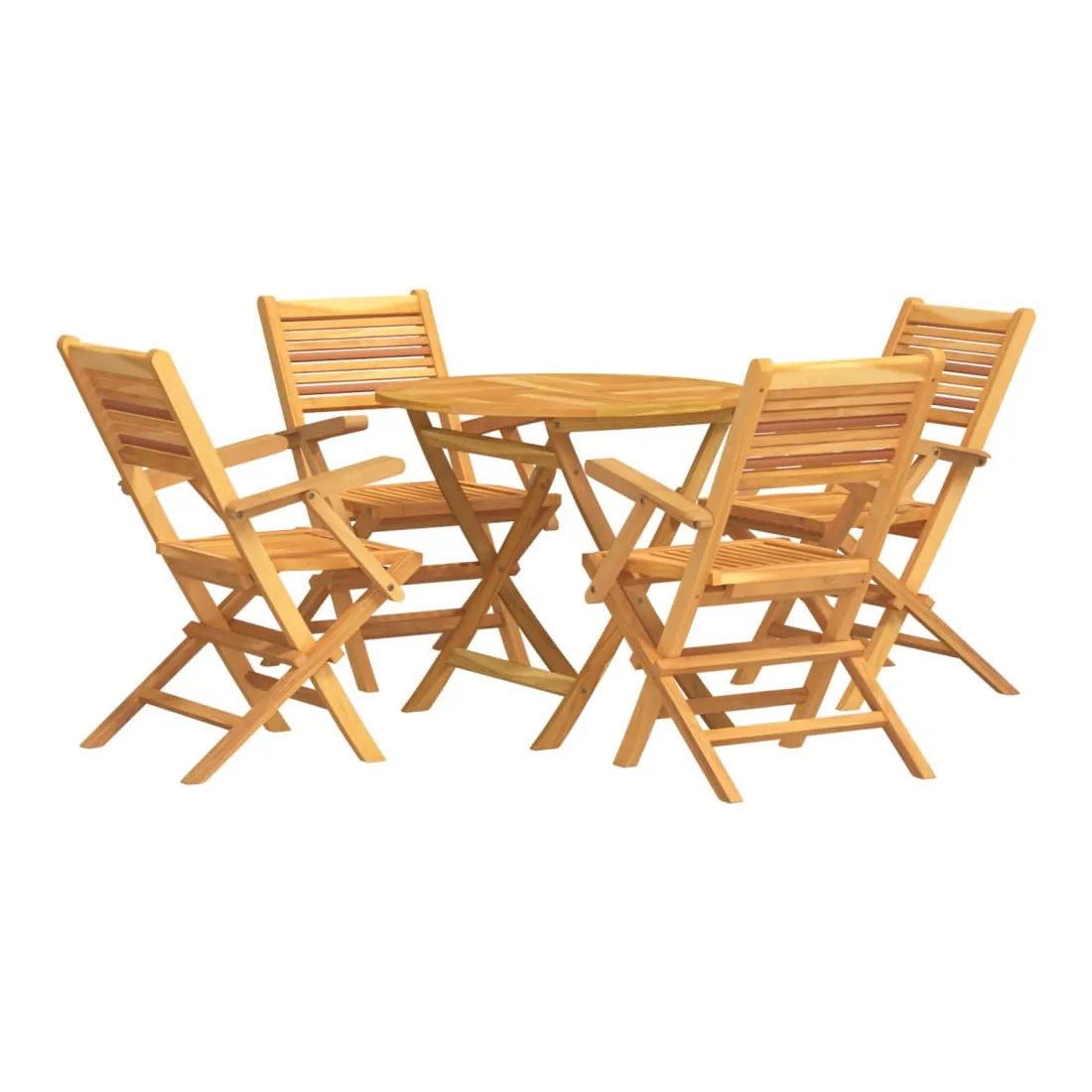 Détendez-vous et profitez d'un thé et de repas agréables avec votre famille et vos amis grâce à cet ensemble de salle à manger de jardin en bois classique ! Bois de teck massif : l'ensemble de salle à manger est fabriqué en bois de teck massif. Le bois de teck massif est un matériau naturel magnifique. Il a été chevronné, séché au four, puis sablé finement pour lui donner une apparence très lisse. Le bois de teck est connu pour sa résistance exceptionnelle et sa résistance aux intempéries.Fonction pliable : l'ensemble de salle à manger d'extérieur peut être plié pour économiser de l'espace lorsqu'il n'est pas utilisé.Expérience confortable : le dossier de la chaise de jardin vous offre un excellent soutien, offrant une expérience confortable optimale.Dessus de table robuste : le dessus de table robuste de la table à manger est parfait pour placer des repas, des boissons, des vases, des bols de fruits ou d'autres objets décoratifs.Trou pour parasol : le dessus de table est doté d'un trou pour parasol, ce qui vous permet de fixer facilement un parasol pour créer un coin ombragé.Design à lattes : la chaise à manger d'extérieur conçue avec un design à lattes est simple et intemporelle. Remarque :Pour que vos meubles d'extérieur restent beaux, nous vous recommandons de les protéger avec une housse imperméable.