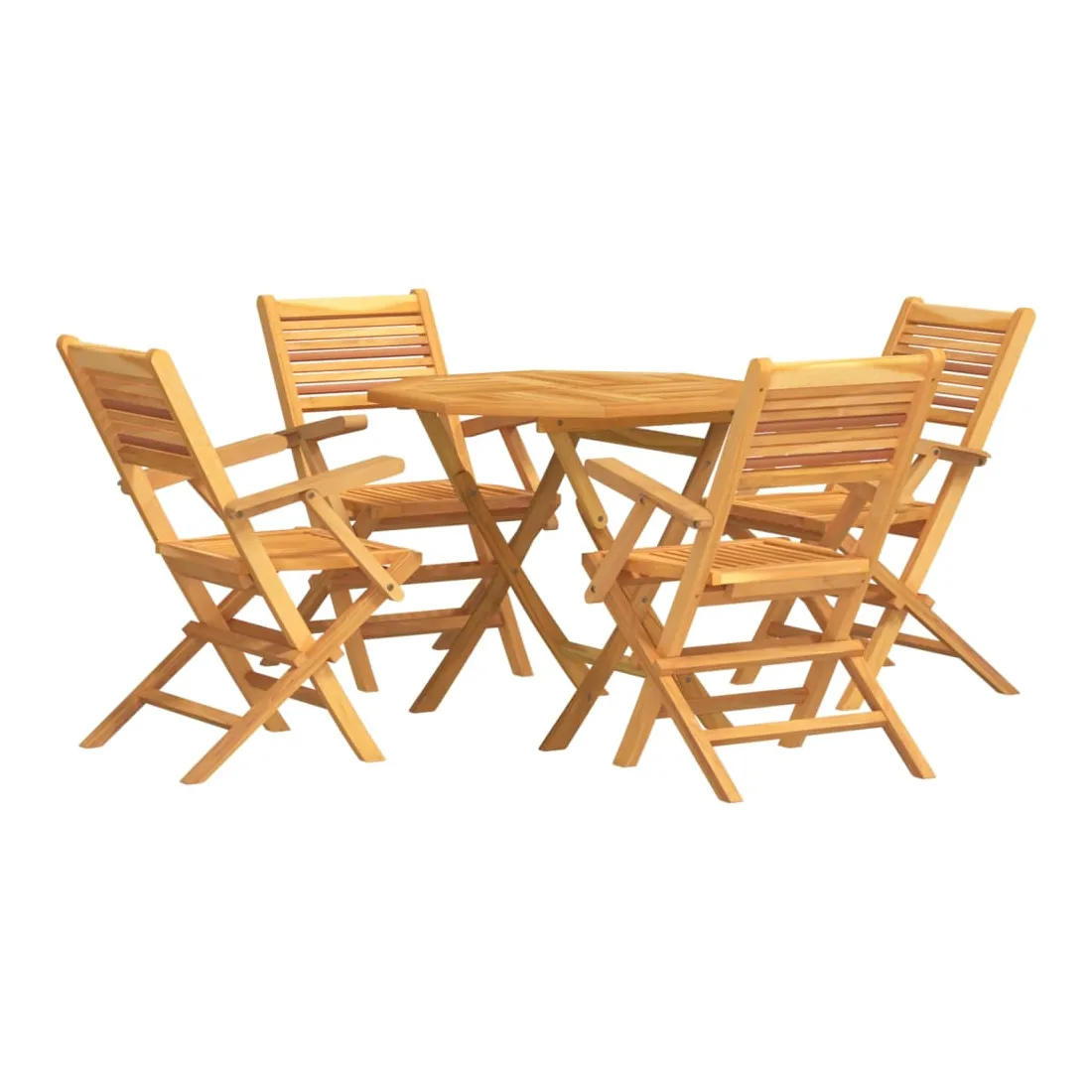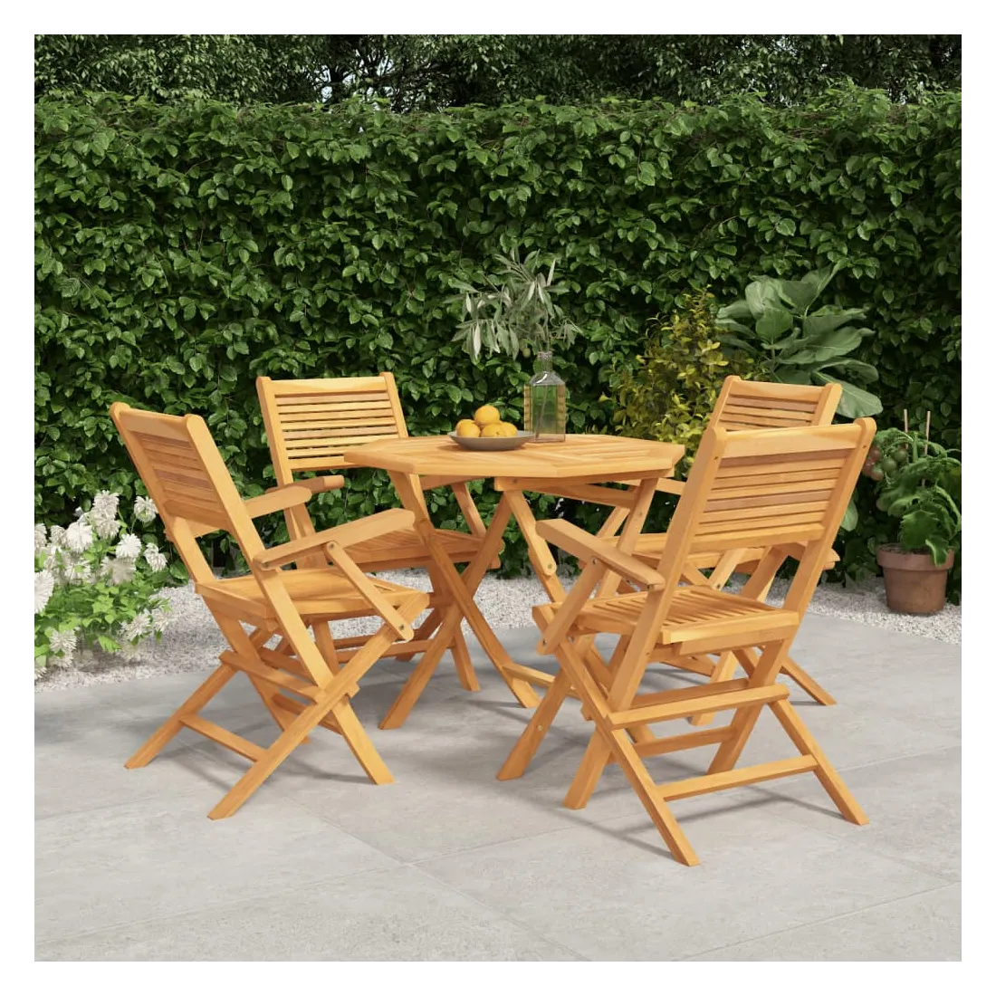 Détendez-vous et profitez d'un thé et de repas agréables avec votre famille et vos amis grâce à cet ensemble de salle à manger de jardin en bois classique ! Bois de teck massif : l'ensemble de salle à manger est fabriqué en bois de teck massif. Le bois de teck massif est un matériau naturel magnifique. Il a été chevronné, séché au four, puis sablé finement pour lui donner une apparence très lisse. Le bois de teck est connu pour sa résistance exceptionnelle et sa résistance aux intempéries.Fonction pliable : l'ensemble de salle à manger d'extérieur peut être plié pour économiser de l'espace lorsqu'il n'est pas utilisé.Expérience confortable : le dossier de la chaise de jardin vous offre un excellent soutien, offrant une expérience confortable optimale.Dessus de table robuste : le dessus de table robuste de la table à manger est parfait pour placer des repas, des boissons, des vases, des bols de fruits ou d'autres objets décoratifs.Trou pour parasol : le dessus de table est doté d'un trou pour parasol, ce qui vous permet de fixer facilement un parasol pour créer un coin ombragé.Design à lattes : la chaise à manger d'extérieur conçue avec un design à lattes est simple et intemporelle. Remarque :Pour que vos meubles d'extérieur restent beaux, nous vous recommandons de les protéger avec une housse imperméable.