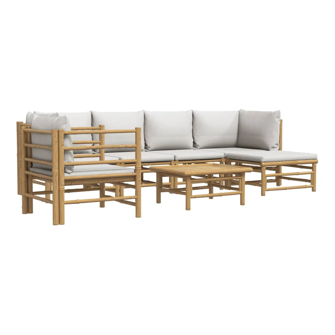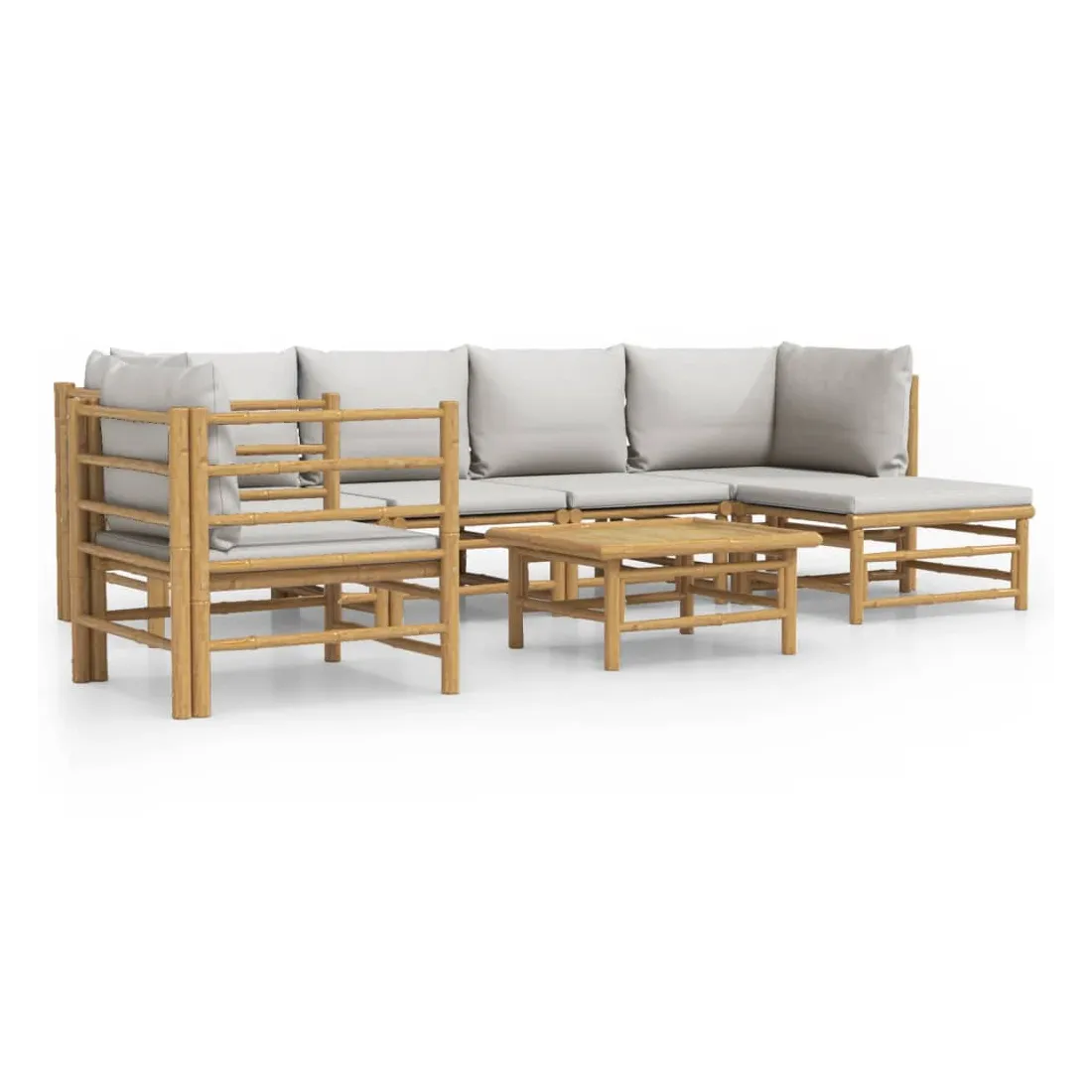 Salon de jardin 7 pcs avec coussins gris clair bambou