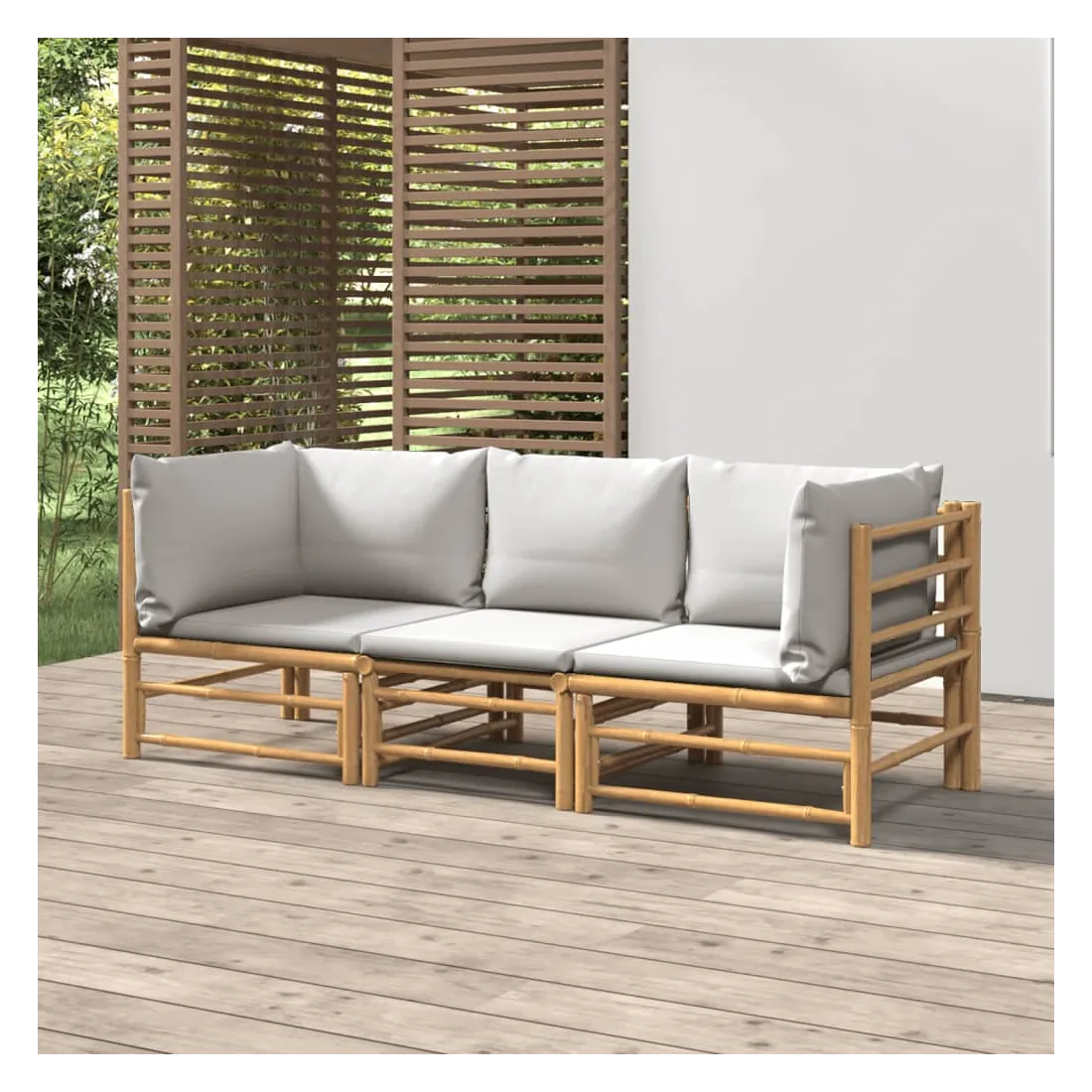 Savourez une tasse de café ou de thé par beau temps dans votre espace extérieur avec cet élégant ensemble de salon de jardin en bambou ! Matériau durable : le bambou est connu pour sa flexibilité et sa dureté. Les meubles en bambou sont une bonne option lorsque vous voulez des meubles d'extérieur solides fabriqués à partir de matériaux naturels.Expérience d'assise confortable : le dossier et l'accoudoir ajoutent un confort d'assise supplémentaire pour l'ensemble de canapé de jardin. De plus, les coussins d'assise et de dossier moelleux offrent un confort pendant votre temps d'assise.Conception modulaire : l'ensemble de salon est flexible et facile à déplacer, vous pouvez donc le combiner avec d'autres segments modulaires dans la boutique en ligne pour créer vos propres configurations d'ensemble de salon d'extérieur ! Remarque :Pour que vos meubles d'extérieur restent beaux, nous vous recommandons de les protéger avec une housse imperméable.Bon à savoir :Pour faciliter au maximum le montage, chaque produit est livré avec des instructions.
