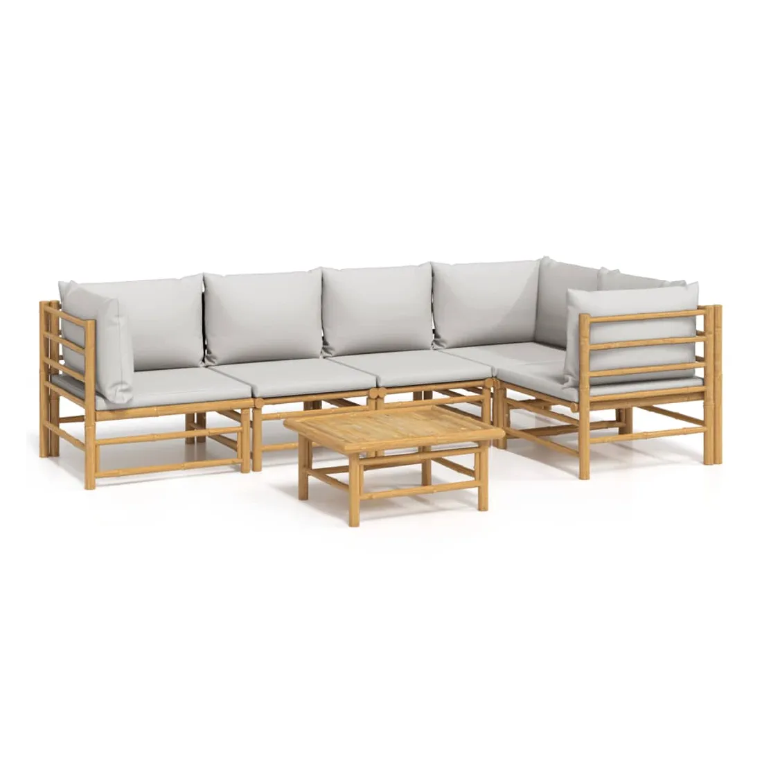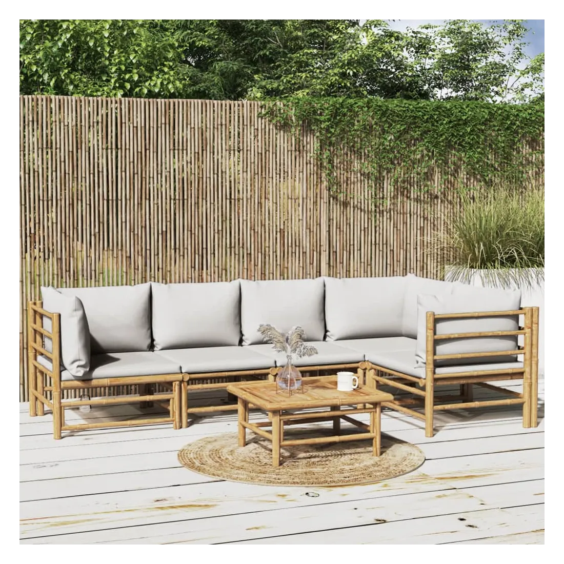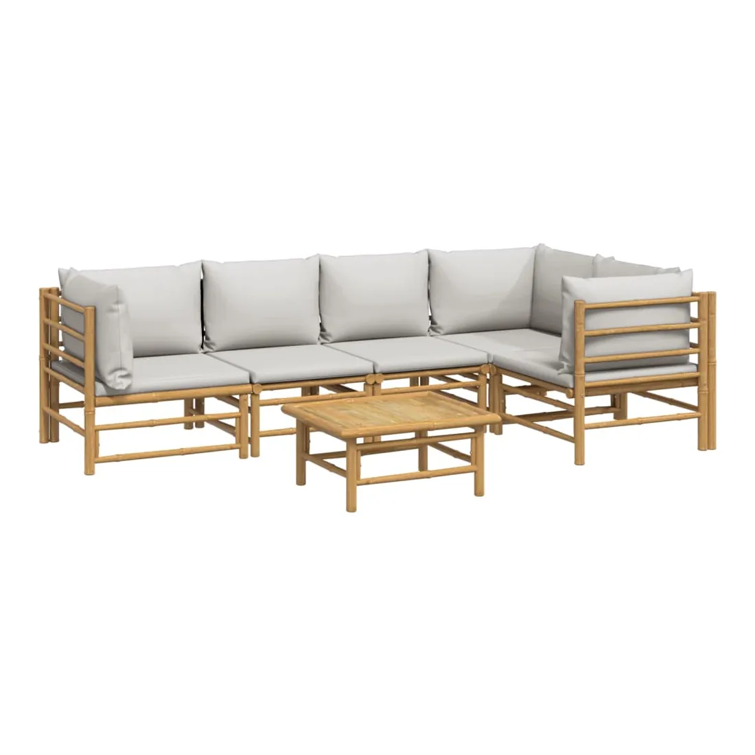 Salon de jardin 6 pcs avec coussins gris clair bambou