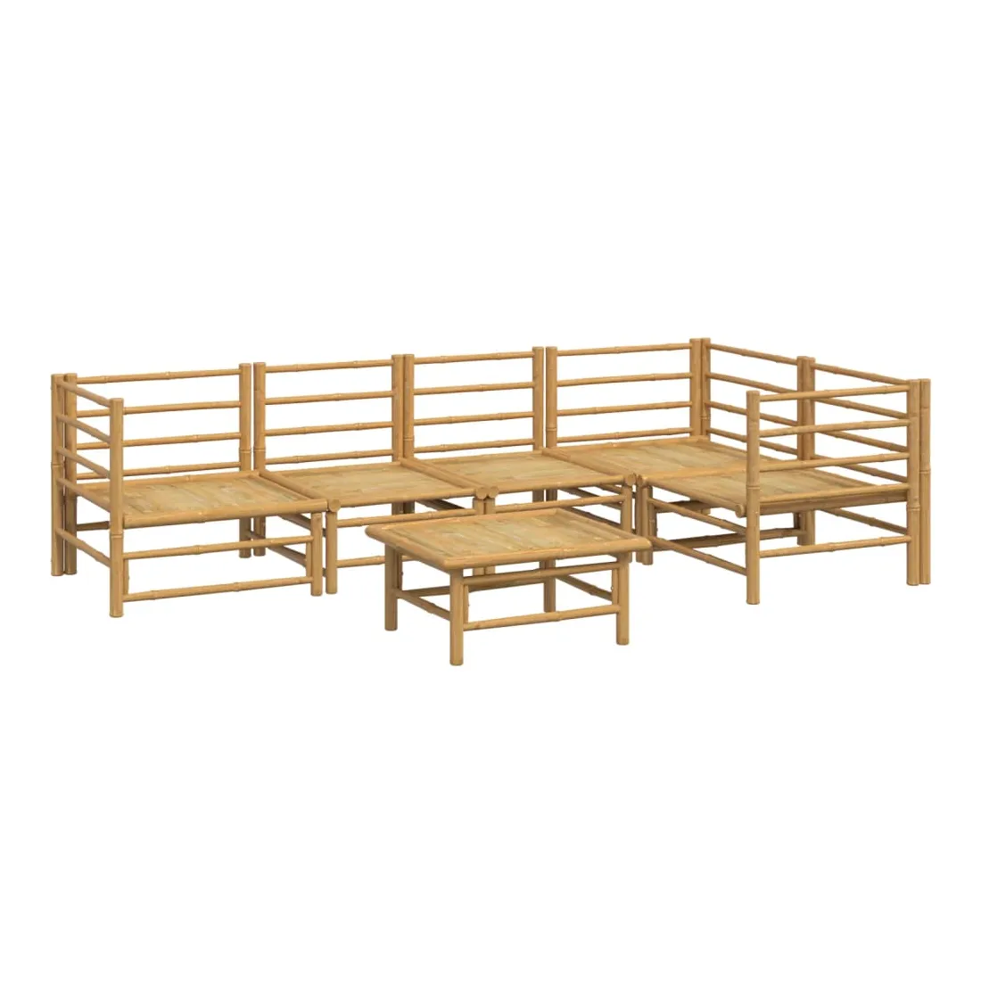 Savourez une tasse de café ou de thé par beau temps dans votre espace extérieur avec cet élégant ensemble de salon de jardin en bambou ! Matériau durable : le bambou est connu pour sa flexibilité et sa dureté. Les meubles en bambou sont une bonne option lorsque vous voulez des meubles d'extérieur solides fabriqués à partir de matériaux naturels.Expérience d'assise confortable : le dossier et l'accoudoir ajoutent un confort d'assise supplémentaire pour l'ensemble de canapé de jardin. De plus, les coussins d'assise et de dossier moelleux offrent un confort pendant votre temps d'assise.Table pratique : la table robuste est parfaite pour placer des repas, des boissons et d'autres objets décoratifs.Conception modulaire : l'ensemble de salon est flexible et facile à déplacer, vous pouvez donc le combiner avec d'autres segments modulaires dans la boutique en ligne pour créer vos propres configurations d'ensemble de salon d'extérieur ! Remarque :Pour que vos meubles d'extérieur restent beaux, nous vous recommandons de les protéger avec une housse imperméable.Bon à savoir :Pour faciliter au maximum le montage, chaque produit est livré avec des instructions.