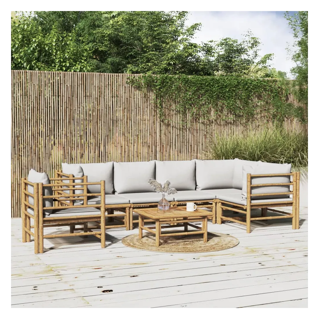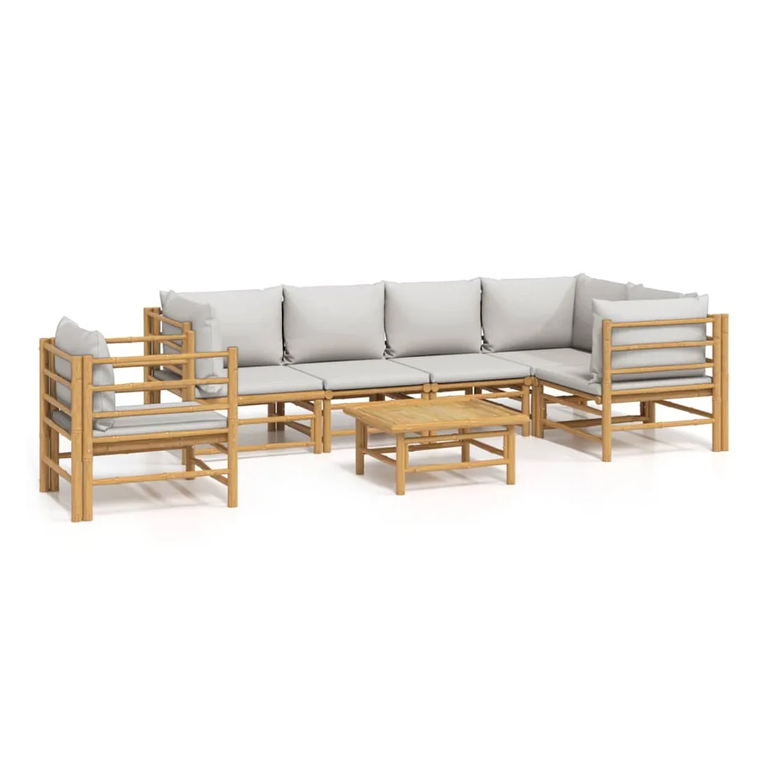 Salon de jardin 7 pcs avec coussins gris clair bambou