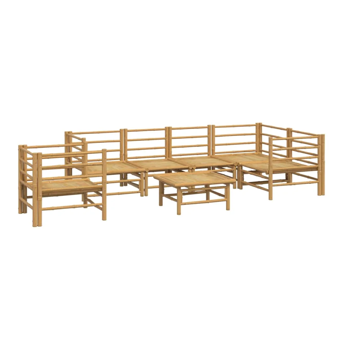 Savourez une tasse de café ou de thé par beau temps dans votre espace extérieur avec cet élégant ensemble de salon de jardin en bambou ! Matériau durable : le bambou est connu pour sa flexibilité et sa dureté. Les meubles en bambou sont une bonne option lorsque vous voulez des meubles d'extérieur solides fabriqués à partir de matériaux naturels.Expérience d'assise confortable : le dossier et l'accoudoir ajoutent un confort d'assise supplémentaire pour l'ensemble de canapé de jardin. De plus, les coussins d'assise et de dossier moelleux offrent un confort pendant votre temps d'assise.Table pratique : la table robuste est parfaite pour placer des repas, des boissons et d'autres objets décoratifs.Conception modulaire : l'ensemble de salon est flexible et facile à déplacer, vous pouvez donc le combiner avec d'autres segments modulaires dans la boutique en ligne pour créer vos propres configurations d'ensemble de salon d'extérieur ! Remarque :Pour que vos meubles d'extérieur restent beaux, nous vous recommandons de les protéger avec une housse imperméable.Bon à savoir :Pour faciliter au maximum le montage, chaque produit est livré avec des instructions.