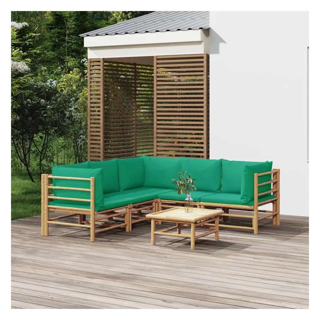 Salon de jardin 6 pcs avec coussins vert bambou