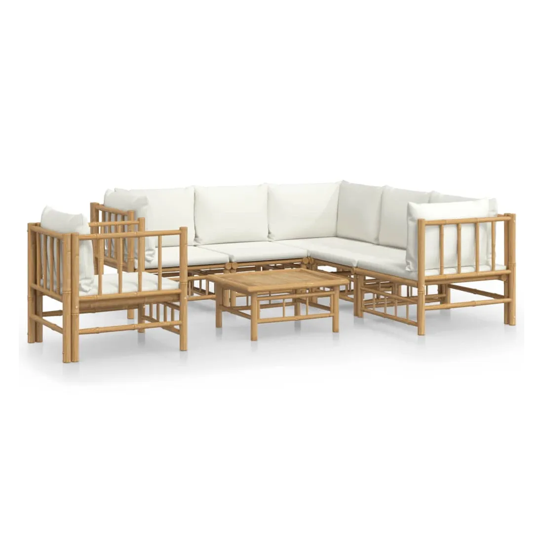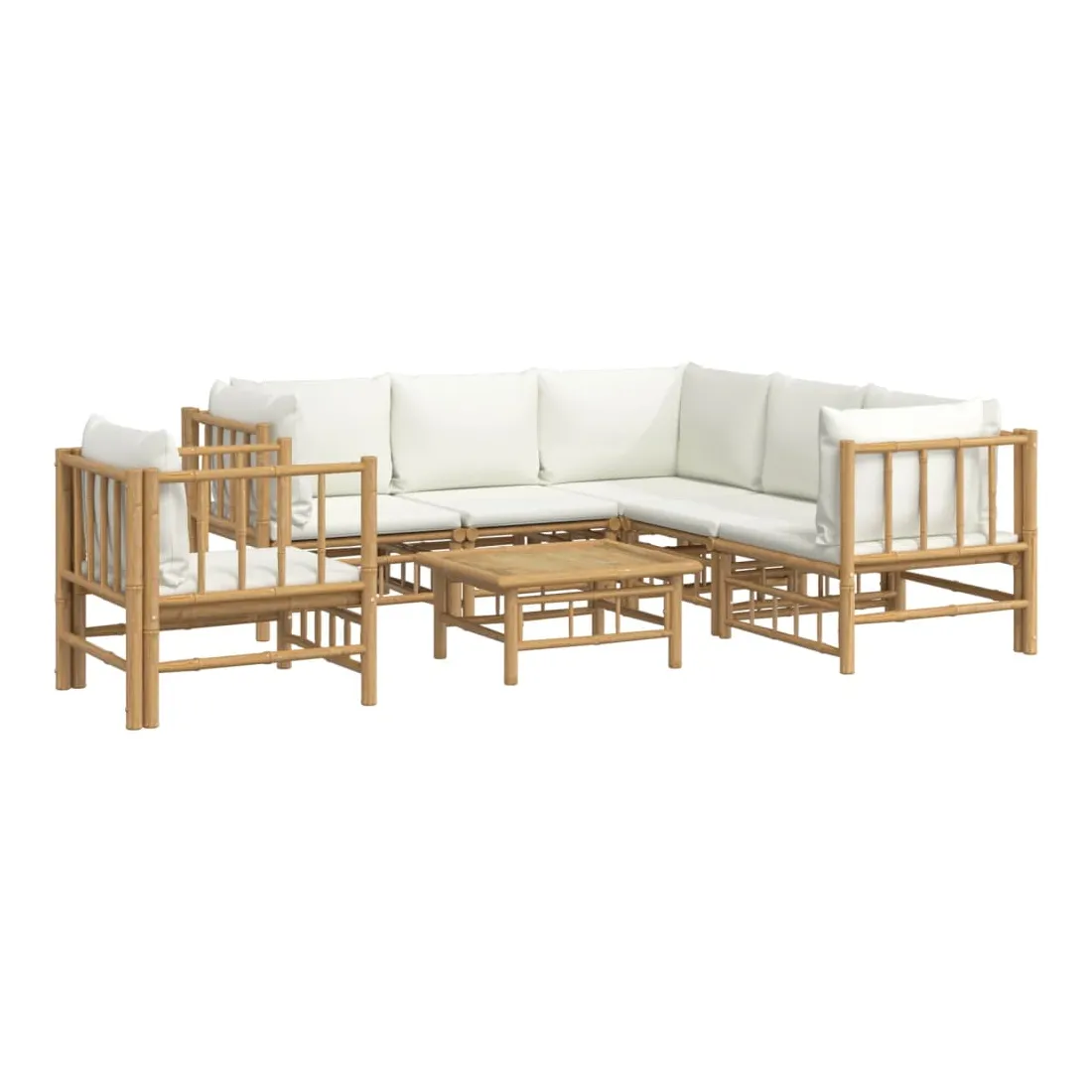 Savourez une tasse de café ou de thé par beau temps dans votre espace extérieur avec cet élégant ensemble de salon de jardin en bambou ! Matériau durable : le bambou est connu pour sa flexibilité et sa dureté. Les meubles en bambou sont une bonne option lorsque vous voulez des meubles d'extérieur solides fabriqués à partir de matériaux naturels.Expérience d'assise confortable : le dossier et l'accoudoir ajoutent un confort d'assise supplémentaire pour l'ensemble de canapé de jardin. De plus, les coussins d'assise et de dossier moelleux offrent un confort pendant votre temps d'assise.Table pratique : la table robuste est parfaite pour placer des repas, des boissons et d'autres objets décoratifs.Conception modulaire : l'ensemble de salon est flexible et facile à déplacer, vous pouvez donc le combiner avec d'autres segments modulaires dans la boutique en ligne pour créer vos propres configurations d'ensemble de salon d'extérieur ! Remarque :Pour que vos meubles d'extérieur restent beaux, nous vous recommandons de les protéger avec une housse imperméable. Bon à savoir :Pour faciliter au maximum le montage, chaque produit est livré avec des instructions.
