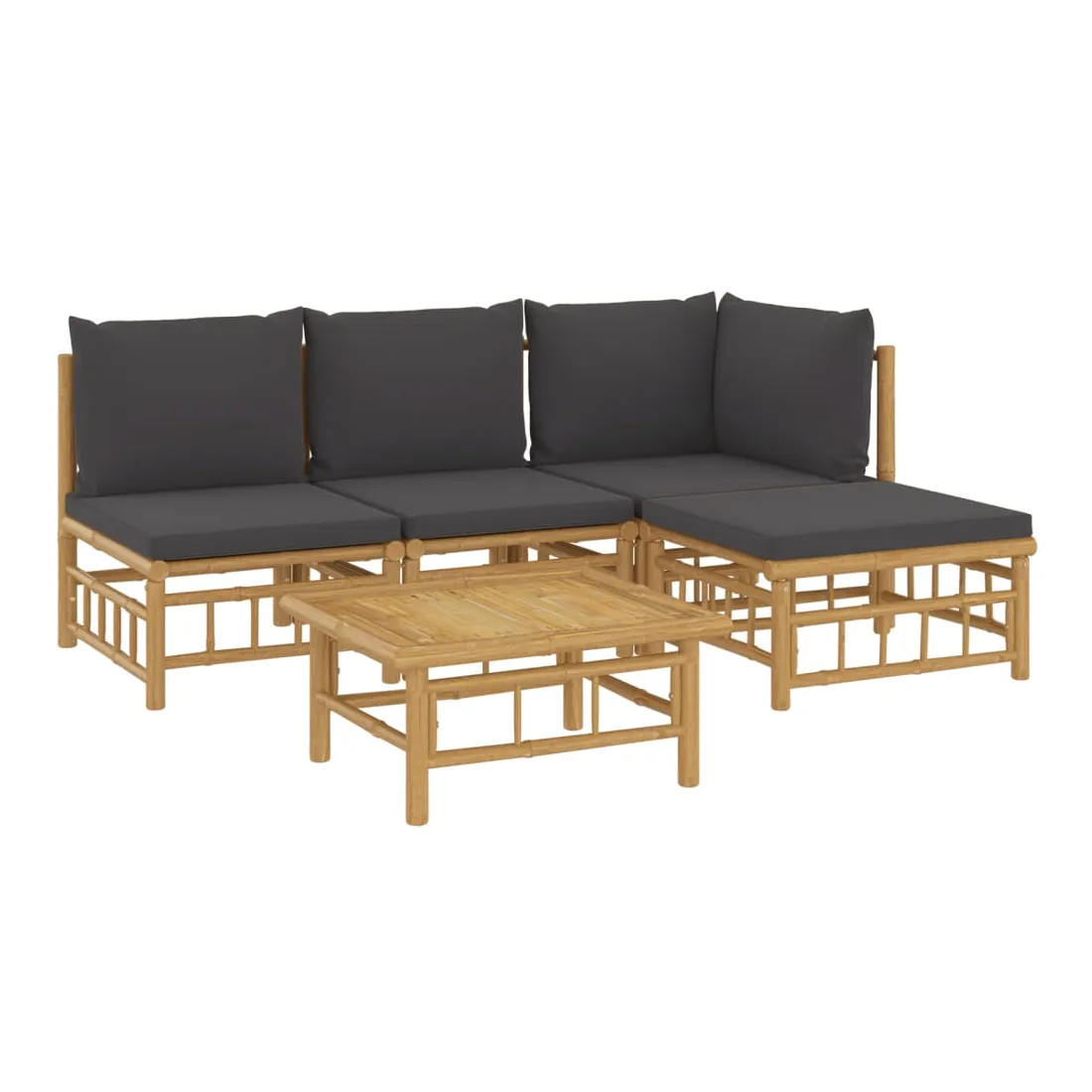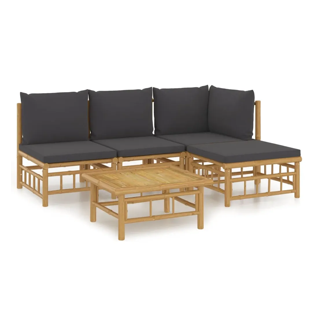 Salon de jardin 5 pcs avec coussins gris foncé bambou