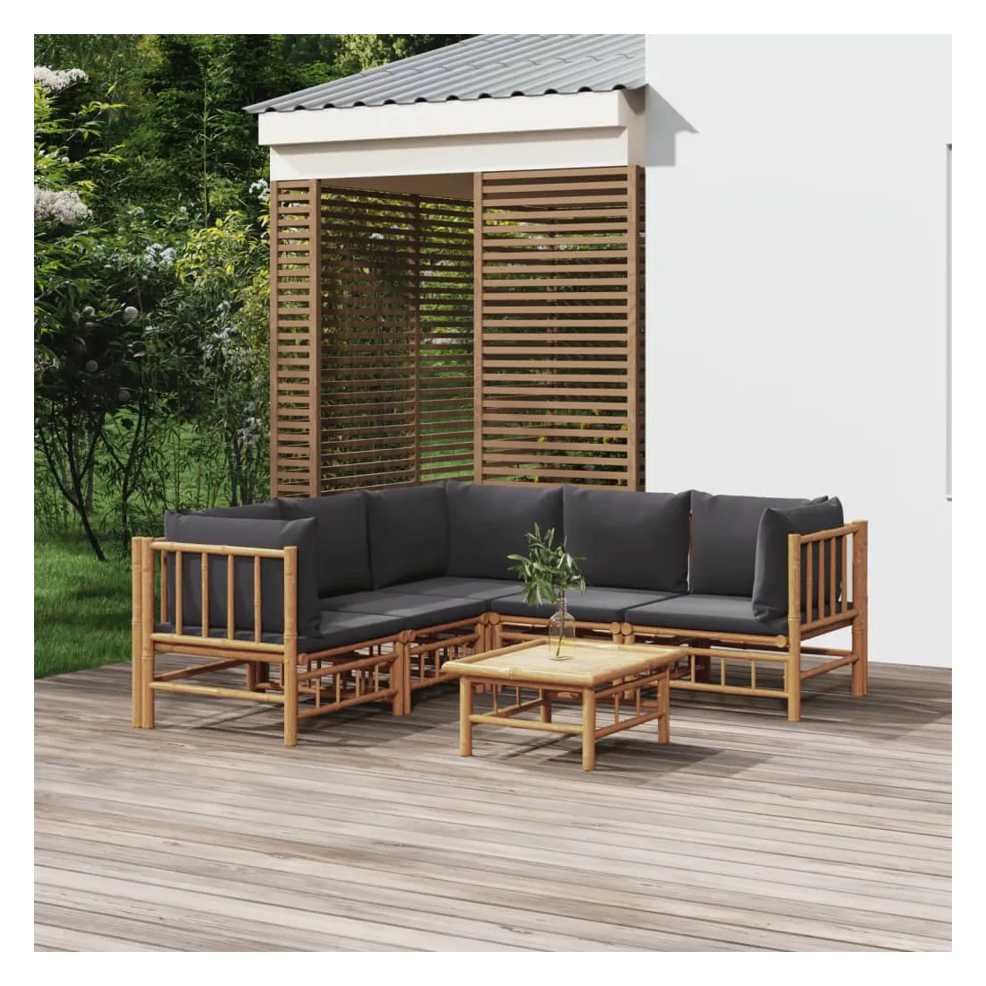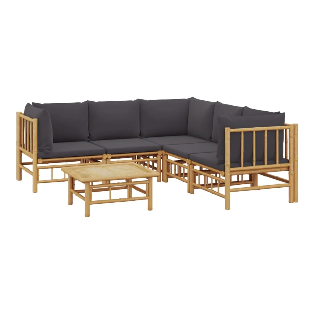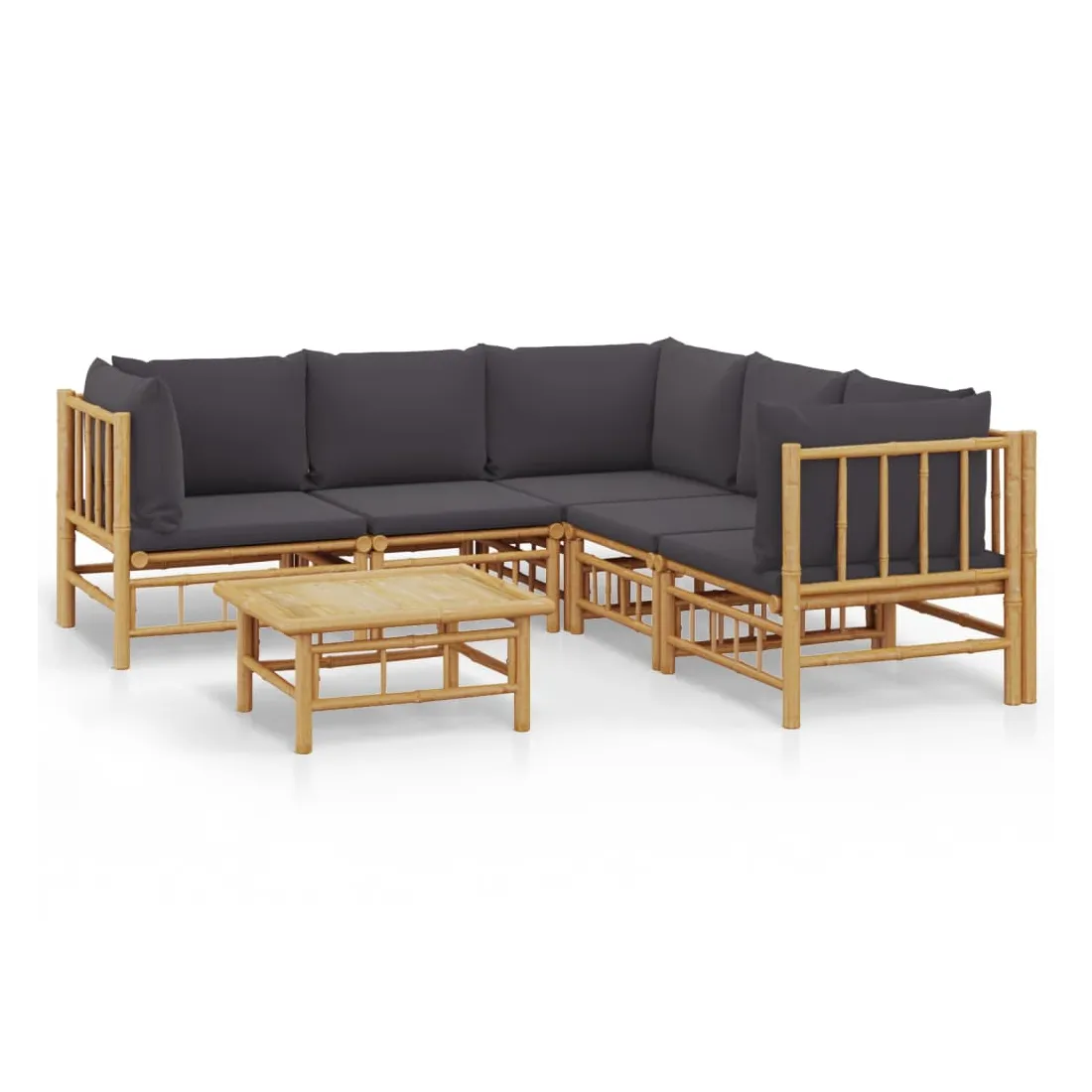 Savourez une tasse de café ou de thé par beau temps dans votre espace extérieur avec cet élégant ensemble de salon de jardin en bambou ! Matériau durable : le bambou est connu pour sa flexibilité et sa dureté. Les meubles en bambou sont une bonne option lorsque vous voulez des meubles d'extérieur solides fabriqués à partir de matériaux naturels.Expérience d'assise confortable : le dossier et l'accoudoir ajoutent un confort d'assise supplémentaire pour l'ensemble de canapé de jardin. De plus, les coussins d'assise et de dossier moelleux offrent un confort pendant votre temps d'assise.Table pratique : la table robuste est parfaite pour placer des repas, des boissons et d'autres objets décoratifs.Conception modulaire : l'ensemble de salon est flexible et facile à déplacer, vous pouvez donc le combiner avec d'autres segments modulaires dans la boutique en ligne pour créer vos propres configurations d'ensemble de salon d'extérieur ! Remarque :Pour que vos meubles d'extérieur restent beaux, nous vous recommandons de les protéger avec une housse imperméable.Bon à savoir :Pour faciliter au maximum le montage, chaque produit est livré avec des instructions.