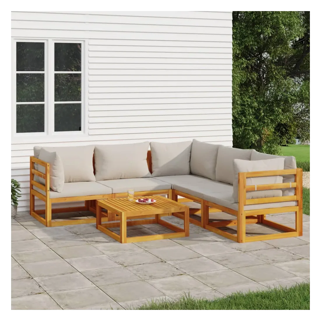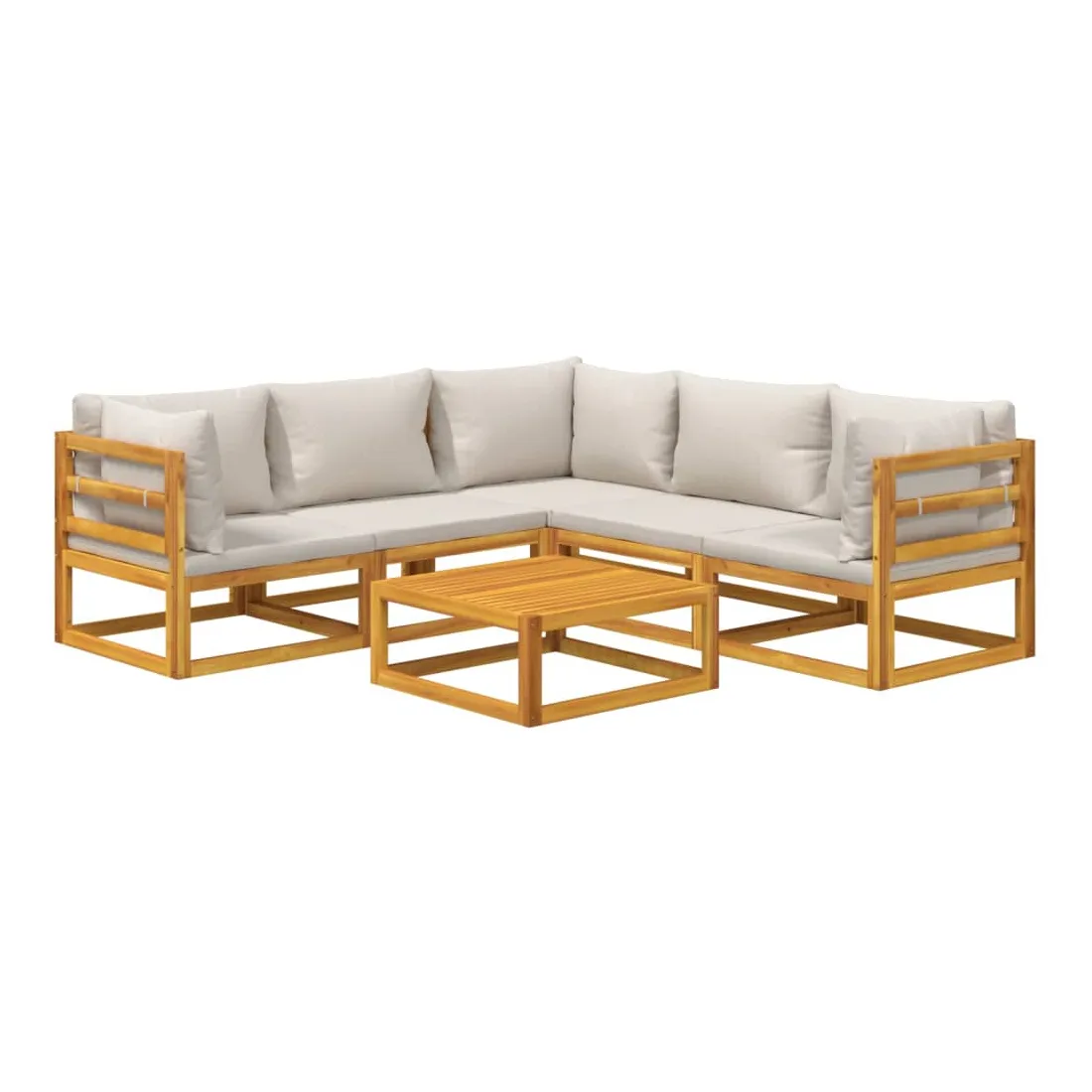 Savourez une tasse de café ou de thé par beau temps dans votre espace extérieur avec cet élégant ensemble de salon de jardin en bois ! Bois d'acacia massif : cet ensemble de meubles de jardin est en bois d'acacia massif. Le bois d'acacia solide est un beau matériau naturel. Le bois d'acacia est un bois dur tropical, qui est dense, robuste et durable.Expérience d'assise confortable : le dossier ajoute un confort d'assise supplémentaire au canapé. De plus, les coussins bien rembourrés offrent du confort pendant votre temps d'assise.Table pratique : la table robuste est parfaite pour placer des repas, des boissons et d'autres objets décoratifs.Design modulaire : le canapé de jardin est flexible et facile à déplacer, vous pouvez donc le combiner avec d'autres segments modulaires de la boutique en ligne pour créer vos propres configurations de salon de jardin ! Bon à savoir :Pour faciliter au maximum le montage, chaque produit est livré avec des instructions. Remarque :Pour que vos meubles d'extérieur restent beaux, nous vous recommandons de les protéger avec une housse imperméable.
