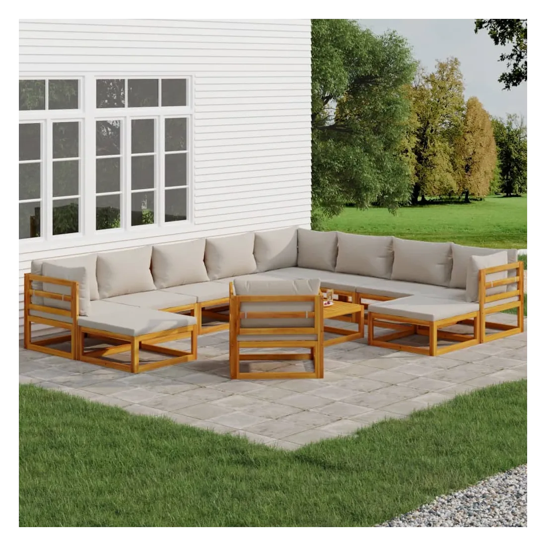 Savourez une tasse de café ou de thé par beau temps dans votre espace extérieur avec cet élégant ensemble de salon de jardin en bois ! Bois d'acacia massif : cet ensemble de meubles de jardin est en bois d'acacia massif. Le bois d'acacia solide est un beau matériau naturel. Le bois d'acacia est un bois dur tropical, qui est dense, robuste et durable.Expérience d'assise confortable : le dossier ajoute un confort d'assise supplémentaire au canapé. De plus, les coussins bien rembourrés offrent du confort pendant votre temps d'assise.Table pratique : la table robuste est parfaite pour placer des repas, des boissons et d'autres objets décoratifs.Design modulaire : le canapé de jardin est flexible et facile à déplacer, vous pouvez donc le combiner avec d'autres segments modulaires de la boutique en ligne pour créer vos propres configurations de salon de jardin ! Bon à savoir :Pour faciliter au maximum le montage, chaque produit est livré avec des instructions. Remarque :Pour que vos meubles d'extérieur restent beaux, nous vous recommandons de les protéger avec une housse imperméable.