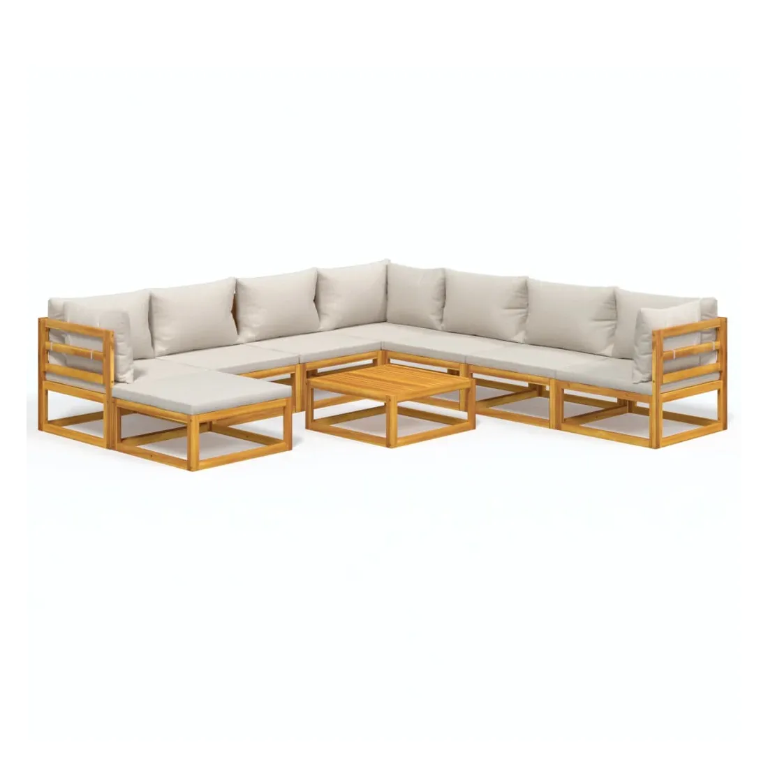 Savourez une tasse de café ou de thé par beau temps dans votre espace extérieur avec cet élégant ensemble de salon de jardin en bois ! Bois d'acacia massif : cet ensemble de meubles de jardin est en bois d'acacia massif. Le bois d'acacia solide est un beau matériau naturel. Le bois d'acacia est un bois dur tropical, qui est dense, robuste et durable.Expérience d'assise confortable : le dossier ajoute un confort d'assise supplémentaire au canapé. De plus, les coussins bien rembourrés offrent du confort pendant votre temps d'assise.Table pratique : la table robuste est parfaite pour placer des repas, des boissons et d'autres objets décoratifs.Design modulaire : le canapé de jardin est flexible et facile à déplacer, vous pouvez donc le combiner avec d'autres segments modulaires de la boutique en ligne pour créer vos propres configurations de salon de jardin ! Bon à savoir :Pour faciliter au maximum le montage, chaque produit est livré avec des instructions. Remarque :Pour que vos meubles d'extérieur restent beaux, nous vous recommandons de les protéger avec une housse imperméable.