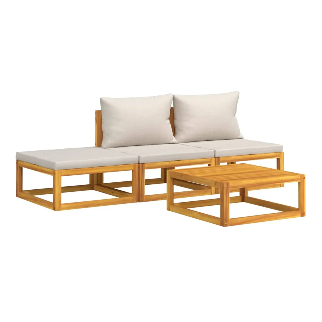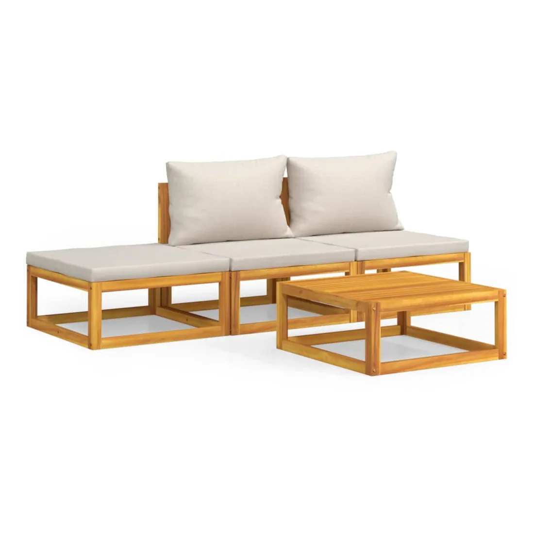 Savourez une tasse de café ou de thé par beau temps dans votre espace extérieur avec cet élégant ensemble de salon de jardin en bois ! Bois d'acacia massif : cet ensemble de meubles de jardin est en bois d'acacia massif. Le bois d'acacia solide est un beau matériau naturel. Le bois d'acacia est un bois dur tropical, qui est dense, robuste et durable.Expérience d'assise confortable : le dossier ajoute un confort d'assise supplémentaire au canapé. De plus, les coussins bien rembourrés offrent du confort pendant votre temps d'assise.Table pratique : la table robuste est parfaite pour placer des repas, des boissons et d'autres objets décoratifs.Design modulaire : le canapé de jardin est flexible et facile à déplacer, vous pouvez donc le combiner avec d'autres segments modulaires de la boutique en ligne pour créer vos propres configurations de salon de jardin ! Bon à savoir :Pour faciliter au maximum le montage, chaque produit est livré avec des instructions. Remarque :Pour que vos meubles d'extérieur restent beaux, nous vous recommandons de les protéger avec une housse imperméable.