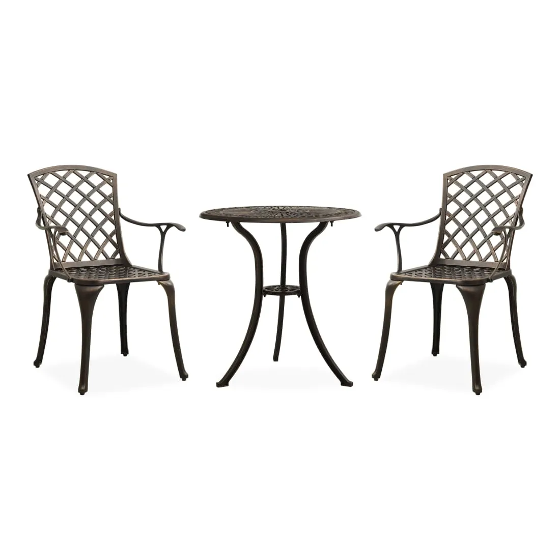 C’est un grand plaisir de discuter avec vos amis ou de prendre une tasse de thé ou de café tout en vous relaxant sur cet ensemble de bistro décoratif et fonctionnel. Les chaises et la table sont en aluminium coulé résistant aux intempéries, vous pourrez donc profiter de l’ensemble de bistro pour de nombreuses années à venir. Ces chaises de jardin disposent de hauts dossiers et de sièges avec un design creux. Les accoudoirs incurvés et ergonomiques peuvent détendre efficacement vos bras. La table robuste dispose de beaux motifs et est adapté pour placer des boissons, de la nourriture et d’autres essentiels. Cet ensemble de mobilier d’extérieur est parfait pour les brunchs au matin ou les longues conversations à l’après-midi.