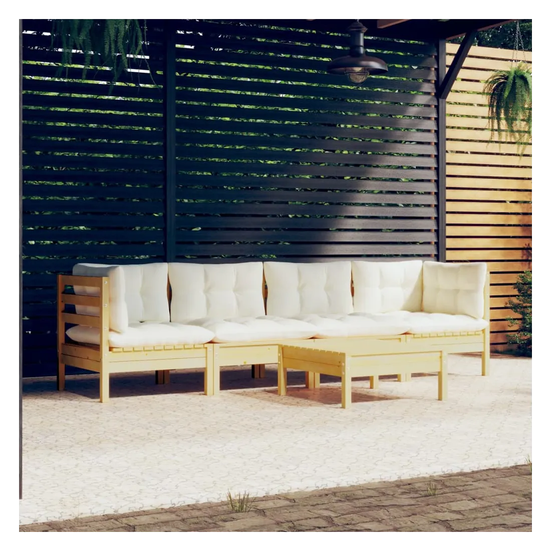 Salon de jardin 5 pcs avec coussins crème bois de pin massif