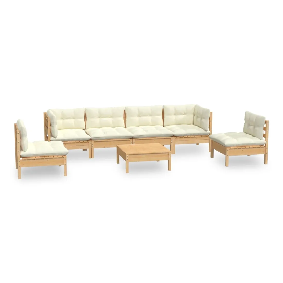 Salon de jardin 7 pcs avec coussins crème bois de pin massif