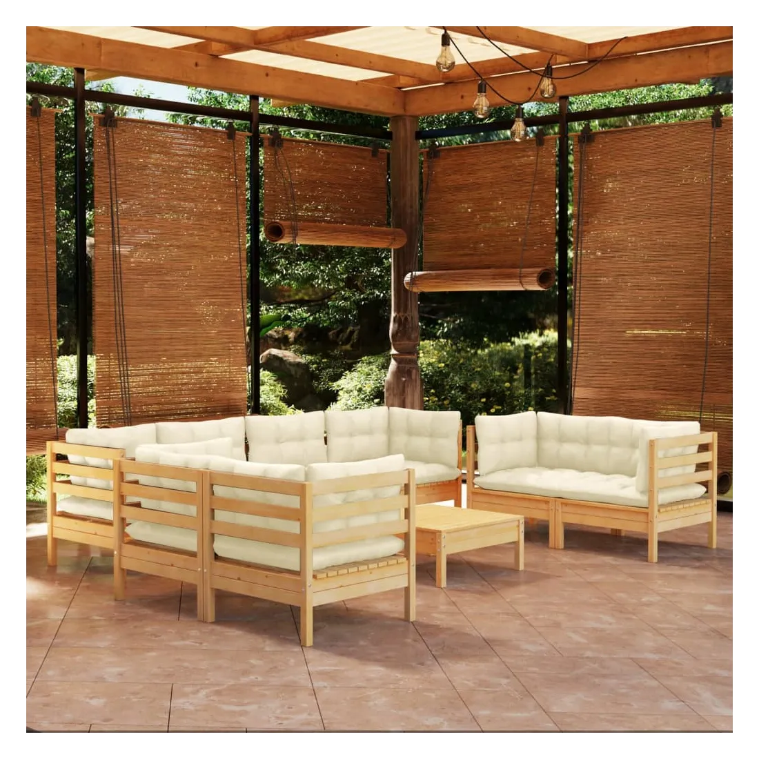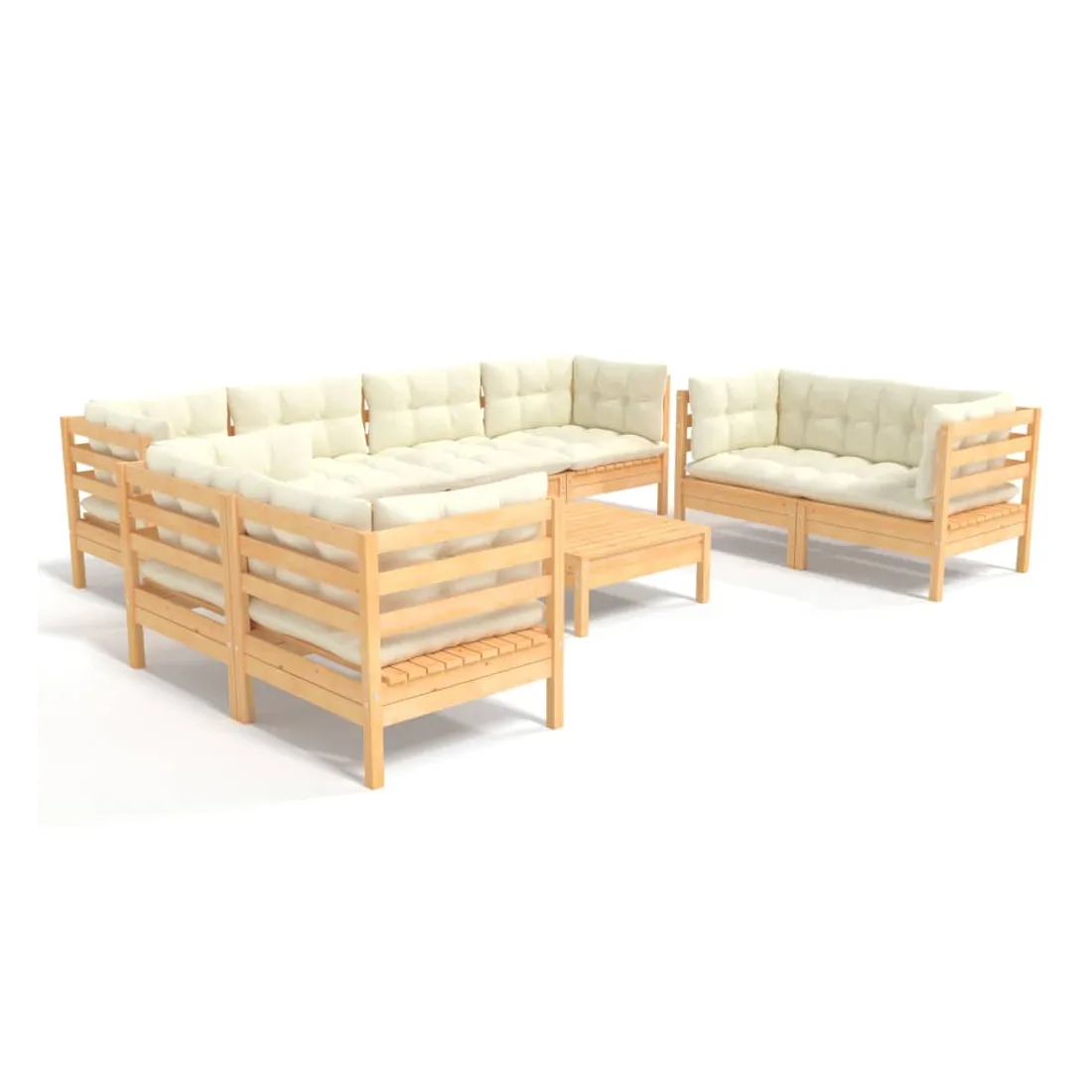 Salon de jardin 9 pcs avec coussins crème bois de pin massif
