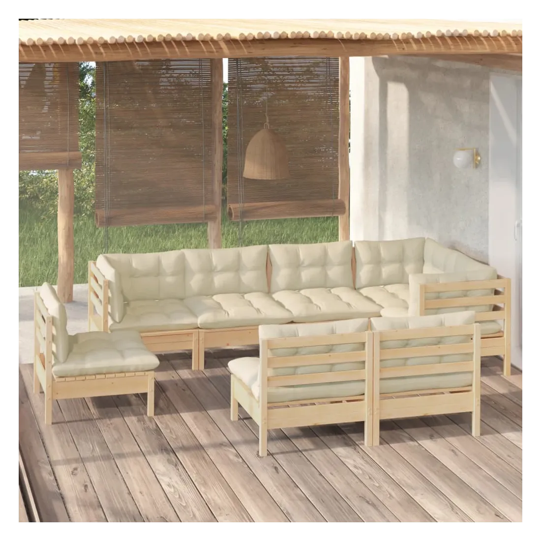 Ce salon de jardin est un excellent choix pour vous détendre et profiter du beau temps, faire une sieste ou discuter avec votre famille ou vos amis. Le salon de patio est fabriqué en bois de pin massif, ce qui le rend robuste et stable. Les coussins ajoutent un confort supplémentaire. Vous pouvez le combiner avec d’autres segments modulaires pour créer vos propres configurations de salon de jardin ! Remarque : afin de prolonger la durée de vie des meubles d'extérieur, nous vous recommandons de les protéger avec une housse imperméable.