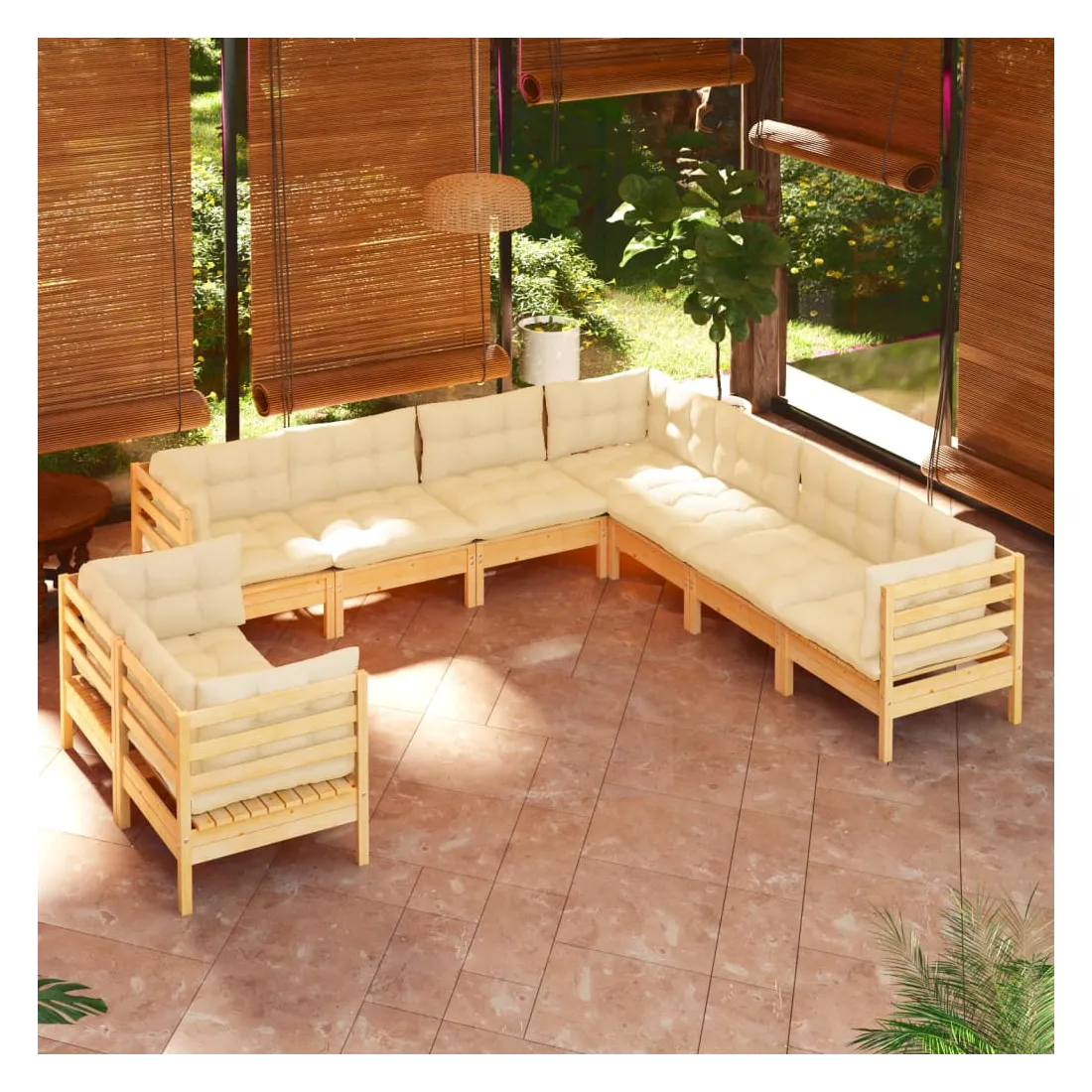 Ce salon de jardin est un excellent choix pour vous détendre et profiter du beau temps, faire une sieste ou discuter avec votre famille ou vos amis. Le salon de patio est fabriqué en bois de pin massif, ce qui le rend robuste et stable. Les coussins ajoutent un confort supplémentaire. Vous pouvez le combiner avec d’autres segments modulaires pour créer vos propres configurations de salon de jardin ! Remarque : afin de prolonger la durée de vie des meubles d'extérieur, nous vous recommandons de les protéger avec une housse imperméable.