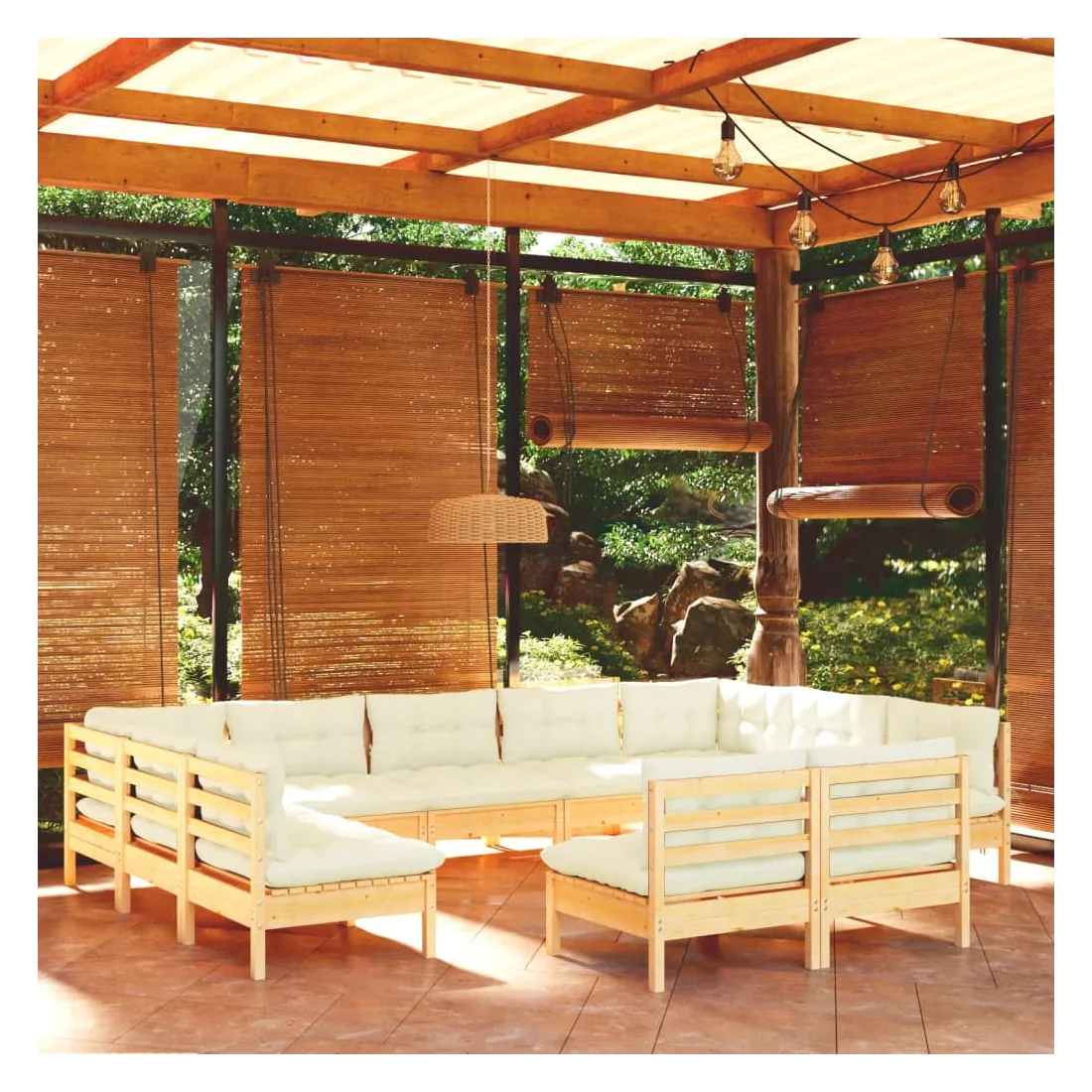 Ce salon de jardin est un excellent choix pour vous détendre et profiter du beau temps, faire une sieste ou discuter avec votre famille ou vos amis. Le salon de patio est fabriqué en bois de pin massif, ce qui le rend robuste et stable. Les coussins ajoutent un confort supplémentaire. Vous pouvez le combiner avec d’autres segments modulaires pour créer vos propres configurations de salon de jardin ! Remarque : afin de prolonger la durée de vie des meubles d'extérieur, nous vous recommandons de les protéger avec une housse imperméable.