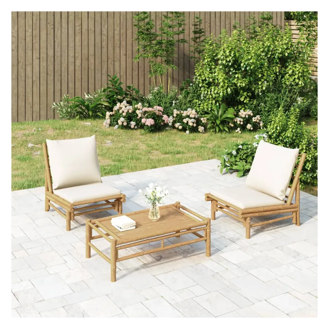 Savourez une tasse de café ou de thé par beau temps dans votre espace extérieur avec cet ensemble de salon de jardin rustique en bambou ! Ensemble en bambou : le bambou est connu pour sa flexibilité et sa dureté. Les meubles en bambou sont une bonne option si l'on veut des meubles d'extérieur robustes fabriqués à partir de matériaux naturels.Expérience d'assise confortable : le dossier ajoute un confort d'assise supplémentaire pour l'ensemble de canapé de jardin. De plus, les coussins d'assise et de dossier moelleux offrent un confort pendant votre temps d'assise.Table pratique : la table robuste est parfaite pour placer des repas, des boissons et d'autres objets décoratifs.Conception modulaire : l'ensemble de salon est flexible et facile à déplacer, vous pouvez donc le combiner avec d'autres segments modulaires dans la boutique en ligne pour créer vos propres configurations d'ensemble de salon d'extérieur ! Remarque :Pour que vos meubles d'extérieur restent beaux, nous vous recommandons de les protéger avec une housse imperméable.