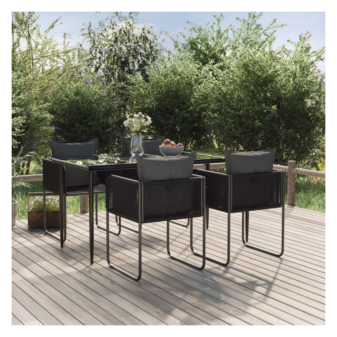 Créez une esthétique convaincante et uniforme dans votre espace extérieur avec cet ensemble de salle à manger de jardin ! Matériau résistant aux intempéries : fabriqué en résine tressée résistante aux intempéries et à l'eau, cet ensemble de salle à manger de jardin est facile à nettoyer, résistant à l'usure et adapté à un usage quotidien.Cadre robuste : les cadres en acier enduit de poudre rendent l'ensemble de salle à manger d'extérieur robuste et stable pour une utilisation quotidienne à l'extérieur.Dessus de table pratique : le dessus lisse de la table de salle à manger est en verre trempé, facile à nettoyer avec un chiffon humide. De plus, le dessus robuste est parfait pour placer des repas, des boissons et d'autres objets décoratifs.Confort supplémentaire : les coussins bien rembourrés offrent un confort ultime pendant votre temps d'assise. Remarque :Afin de prolonger la durée de vie de votre mobilier d'extérieur, nous vous recommandons de le protéger avec une housse imperméable.Chaque produit est livré avec un manuel de montage dans la boîte pour un montage facile.