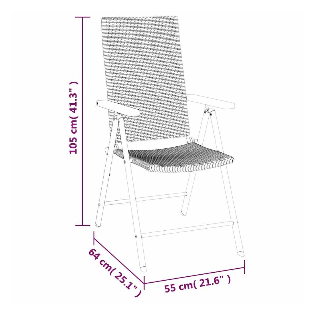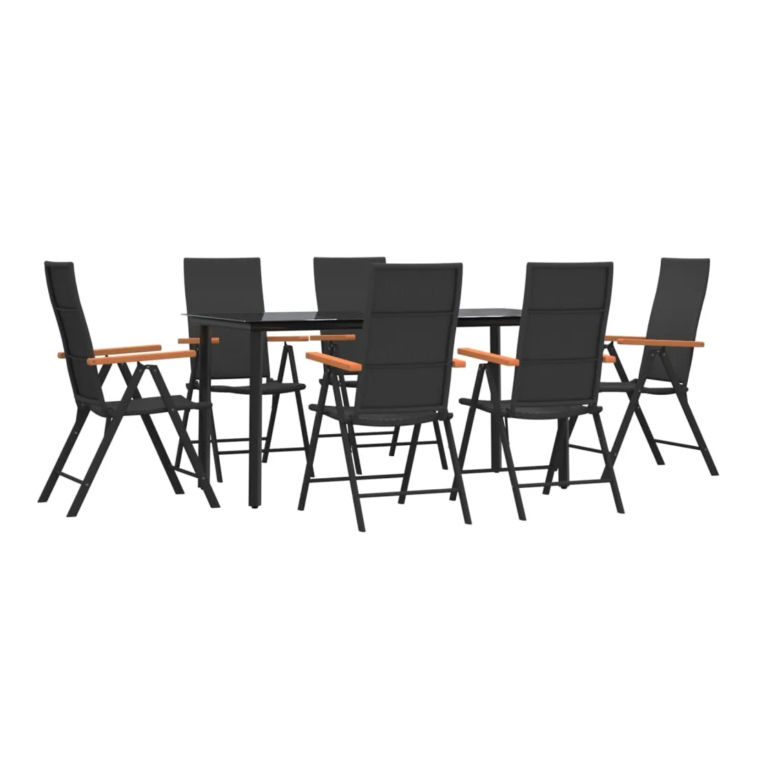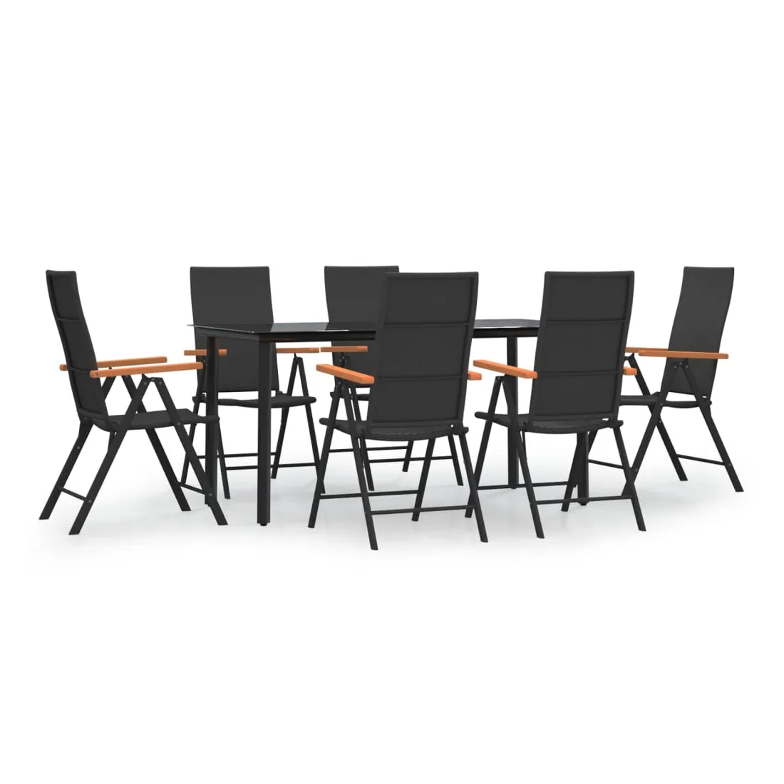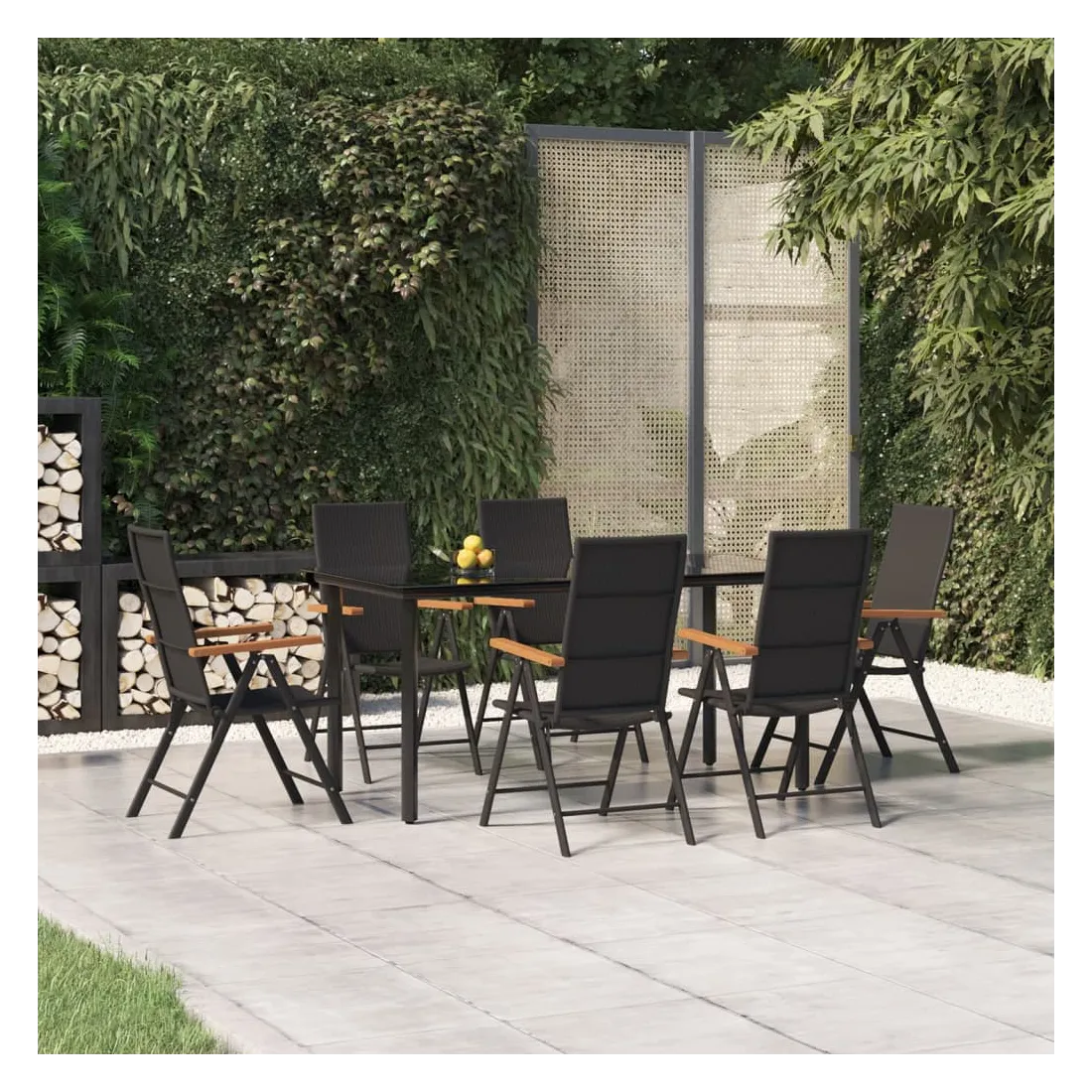vidaXLCréez une esthétique convaincante et uniforme dans votre espace extérieur avec cet ensemble de salle à manger de jardin ! Matériau résistant aux intempéries : la résine tressée, également connue sous le nom de rotin poly, résiste aux intempéries et est facile à nettoyer. Elle reste belle à l'extérieur pendant une longue période. Elle offre une excellente qualité, commodité et un aspect esthétique.Cadre robuste : les cadres en acier enduit de poudre rendent l'ensemble de salle à manger d'extérieur robuste et stable pour une utilisation quotidienne à l'extérieur.Dessus de table pratique : le dessus lisse de la table de salle à manger est en verre trempé, facile à nettoyer avec un chiffon humide. De plus, le dessus robuste est parfait pour placer des repas, des boissons et d'autres objets décoratifs.Design inclinable et pliable : les dossiers des chaises disposent de 7 réglages d'inclinaison, de sorte que vous puissiez toujours trouver la position assise la plus confortable. De plus, les chaises de jardin peuvent être pliées pour économiser de l'espace lorsqu'elles ne sont pas utilisées. Remarque :Afin de prolonger la durée de vie de votre mobilier d'extérieur, nous vous recommandons de le protéger avec une housse imperméable.Chaque produit est livré avec un manuel de montage dans la boîte pour un montage facile.