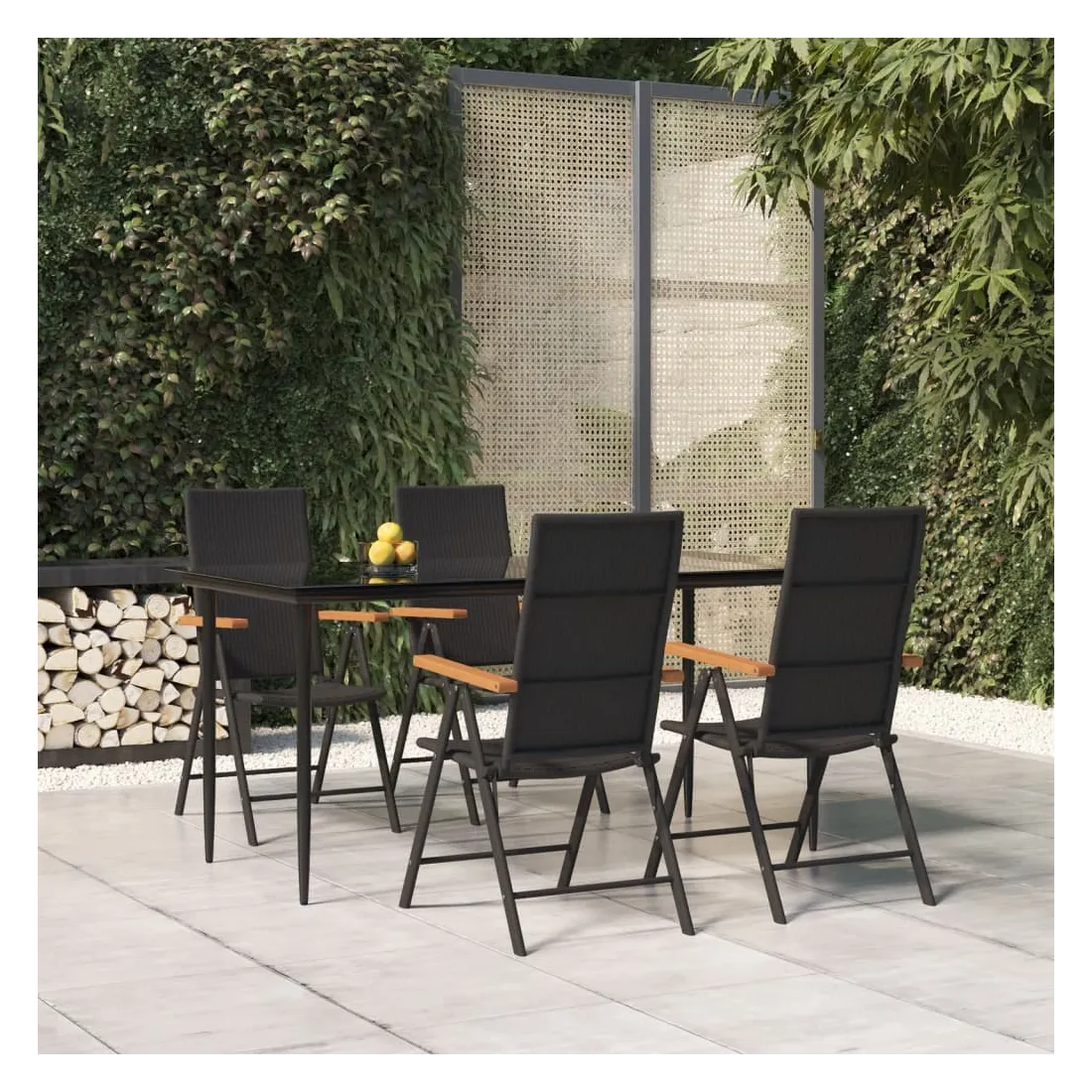 vidaXLCréez une esthétique convaincante et uniforme dans votre espace extérieur avec cet ensemble de salle à manger de jardin ! Matériau résistant aux intempéries : la résine tressée, également connue sous le nom de rotin poly, résiste aux intempéries et est facile à nettoyer. Elle reste belle à l'extérieur pendant une longue période. Elle offre une excellente qualité, commodité et un aspect esthétique.Cadre robuste : les cadres en acier enduit de poudre rendent l'ensemble de salle à manger d'extérieur robuste et stable pour une utilisation quotidienne à l'extérieur.Dessus de table pratique : le dessus lisse de la table de salle à manger est en verre trempé, facile à nettoyer avec un chiffon humide. De plus, le dessus robuste est parfait pour placer des repas, des boissons et d'autres objets décoratifs.Design inclinable et pliable : les dossiers des chaises disposent de 7 réglages d'inclinaison, de sorte que vous puissiez toujours trouver la position assise la plus confortable. De plus, les chaises de jardin peuvent être pliées pour économiser de l'espace lorsqu'elles ne sont pas utilisées. Remarque :Afin de prolonger la durée de vie de votre mobilier d'extérieur, nous vous recommandons de le protéger avec une housse imperméable.Chaque produit est livré avec un manuel de montage dans la boîte pour un montage facile.