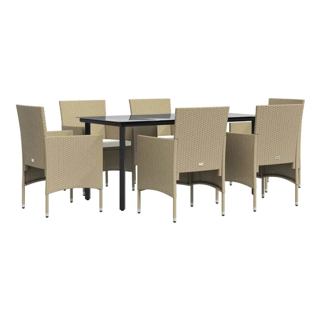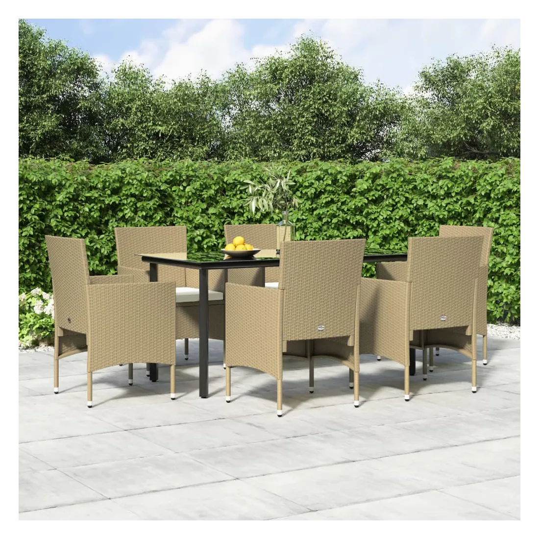 Cet ensemble de salle à manger de jardin, au design élégant et contemporain, est un excellent choix pour manger ou se détendre dans le jardin. Matériau résistant aux intempéries : fabriqué en résine tressée résistante aux intempéries et à l'eau, cet ensemble de salle à manger de jardin est facile à nettoyer, résistant à l'usure et adapté à un usage quotidien.Cadre robuste : les cadres en acier enduit de poudre rendent l'ensemble de salle à manger d'extérieur robuste et stable pour une utilisation quotidienne à l'extérieur.Dessus de table pratique : le dessus lisse de la table de salle à manger est en verre trempé, facile à nettoyer avec un chiffon humide. De plus, le dessus robuste est parfait pour placer des repas, des boissons et d'autres objets décoratifs.Design confortable : conçues avec des dossiers et des accoudoirs incurvés, ces chaises d'extérieur offrent un maximum de confort.Confort supplémentaire : les coussins bien rembourrés offrent un confort ultime pendant votre temps d'assise. Remarque :Afin de prolonger la durée de vie de votre mobilier d'extérieur, nous vous recommandons de le protéger avec une housse imperméable.Chaque produit est livré avec un manuel de montage dans la boîte pour un montage facile.
