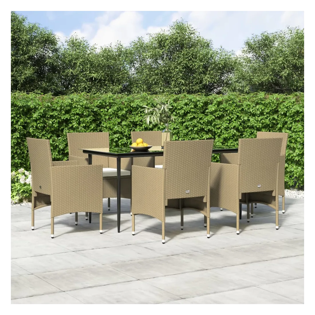 Cet ensemble de salle à manger de jardin, au design élégant et contemporain, est un excellent choix pour manger ou se détendre dans le jardin. Matériau résistant aux intempéries : fabriqué en résine tressée résistante aux intempéries et à l'eau, cet ensemble de salle à manger de jardin est facile à nettoyer, résistant à l'usure et adapté à un usage quotidien.Cadre robuste : les cadres en acier enduit de poudre rendent l'ensemble de salle à manger d'extérieur robuste et stable pour une utilisation quotidienne à l'extérieur.Dessus de table pratique : le dessus lisse de la table de salle à manger est en verre trempé, facile à nettoyer avec un chiffon humide. De plus, le dessus robuste est parfait pour placer des repas, des boissons et d'autres objets décoratifs.Design confortable : conçues avec des dossiers et des accoudoirs incurvés, ces chaises d'extérieur offrent un maximum de confort.Confort supplémentaire : les coussins bien rembourrés offrent un confort ultime pendant votre temps d'assise. Remarque :Afin de prolonger la durée de vie de votre mobilier d'extérieur, nous vous recommandons de le protéger avec une housse imperméable.Chaque produit est livré avec un manuel de montage dans la boîte pour un montage facile.