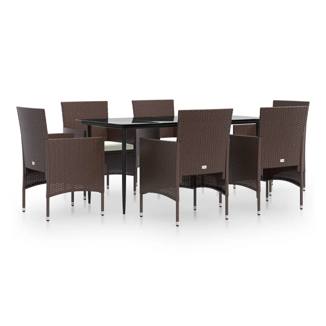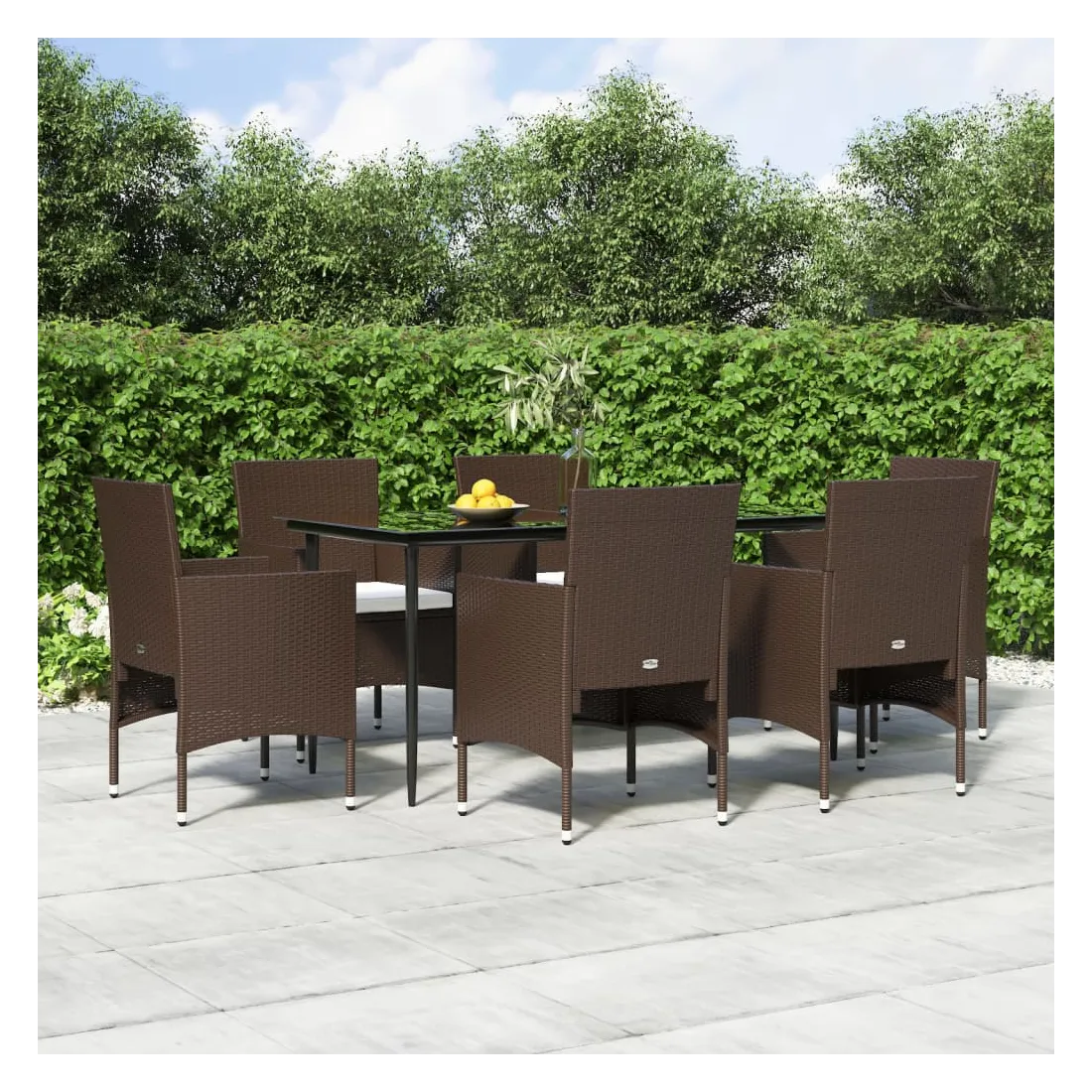 Cet ensemble de salle à manger de jardin, au design élégant et contemporain, est un excellent choix pour manger ou se détendre dans le jardin. Matériau résistant aux intempéries : fabriqué en résine tressée résistante aux intempéries et à l'eau, cet ensemble de salle à manger de jardin est facile à nettoyer, résistant à l'usure et adapté à un usage quotidien.Cadre robuste : les cadres en acier enduit de poudre rendent l'ensemble de salle à manger d'extérieur robuste et stable pour une utilisation quotidienne à l'extérieur.Dessus de table pratique : le dessus lisse de la table de salle à manger est en verre trempé, facile à nettoyer avec un chiffon humide. De plus, le dessus robuste est parfait pour placer des repas, des boissons et d'autres objets décoratifs.Design confortable : conçues avec des dossiers et des accoudoirs incurvés, ces chaises d'extérieur offrent un maximum de confort.Confort supplémentaire : les coussins bien rembourrés offrent un confort ultime pendant votre temps d'assise. Remarque :Afin de prolonger la durée de vie de votre mobilier d'extérieur, nous vous recommandons de le protéger avec une housse imperméable.Chaque produit est livré avec un manuel de montage dans la boîte pour un montage facile.