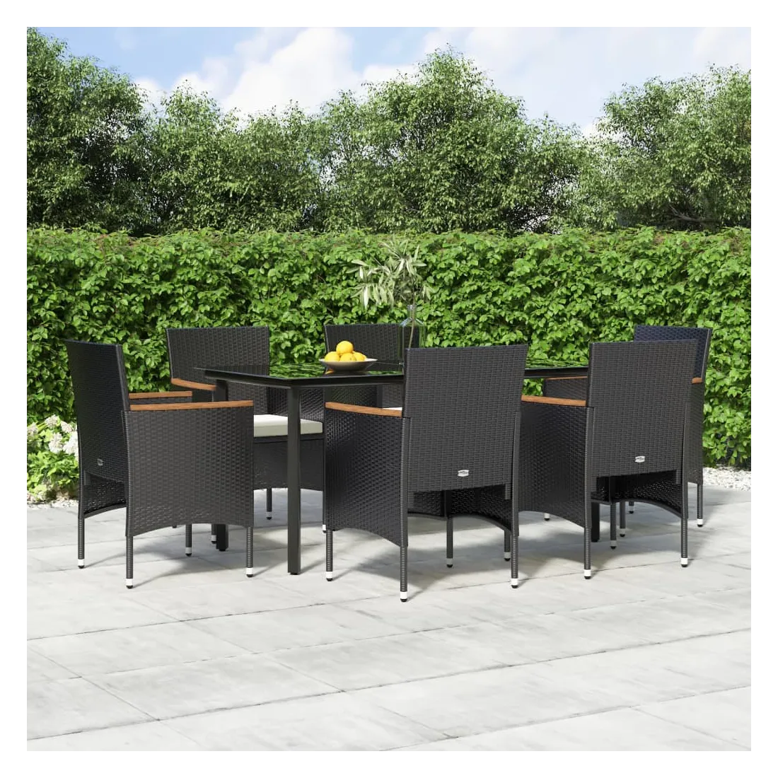 Cet ensemble de salle à manger de jardin, au design élégant et contemporain, est un excellent choix pour manger ou se détendre dans le jardin. Matériau résistant aux intempéries : fabriqué en résine tressée résistante aux intempéries et à l'eau, cet ensemble de salle à manger de jardin est facile à nettoyer, résistant à l'usure et adapté à un usage quotidien.Cadre robuste : les cadres en acier enduit de poudre rendent l'ensemble de salle à manger d'extérieur robuste et stable pour une utilisation quotidienne à l'extérieur.Dessus de table pratique : le dessus lisse de la table de salle à manger est en verre trempé, facile à nettoyer avec un chiffon humide. De plus, le dessus robuste est parfait pour placer des repas, des boissons et d'autres objets décoratifs.Design confortable : conçues avec des dossiers et des accoudoirs incurvés, ces chaises d'extérieur offrent un maximum de confort.Confort supplémentaire : les coussins bien rembourrés offrent un confort ultime pendant votre temps d'assise. Remarque :Afin de prolonger la durée de vie de votre mobilier d'extérieur, nous vous recommandons de le protéger avec une housse imperméable.Chaque produit est livré avec un manuel de montage dans la boîte pour un montage facile.