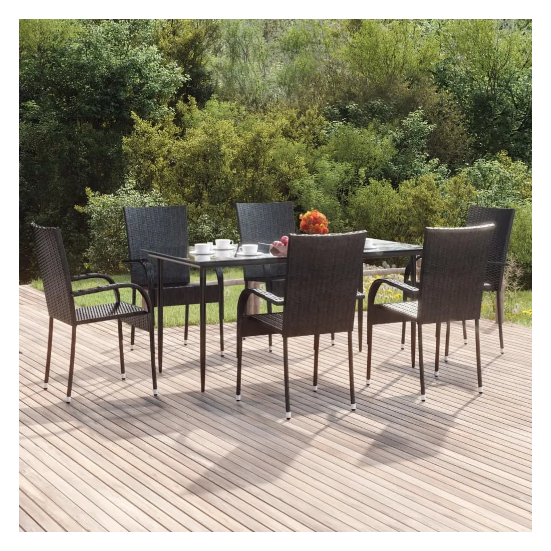 Cet ensemble de salle à manger de jardin est un excellent choix pour manger ou vous détendre dans l'espace extérieur ! Matériau durable : la résine tressée, également connue sous le nom de rotin poly, résiste aux intempéries et est facile à nettoyer. Elle reste belle à l'extérieur pendant une longue période. Elle offre une excellente qualité, commodité et un aspect esthétique.Cadre robuste : les cadres en acier enduit de poudre rendent l'ensemble de salle à manger d'extérieur robuste et stable pour une utilisation quotidienne à l'extérieur.Dessus de table pratique : le dessus lisse de la table de salle à manger est en verre trempé, facile à nettoyer avec un chiffon humide. De plus, le dessus robuste est parfait pour placer des repas, des boissons et d'autres objets décoratifs.Conception flexible : grâce à leur construction légère, ces chaises d'extérieur sont faciles à déplacer et peuvent être empilées pour économiser de l'espace lorsqu'elles ne sont pas utilisées. Remarque :Afin de prolonger la durée de vie de votre mobilier d'extérieur, nous vous recommandons de le protéger avec une housse imperméable.Chaque produit est livré avec un manuel de montage dans la boîte pour un montage facile.