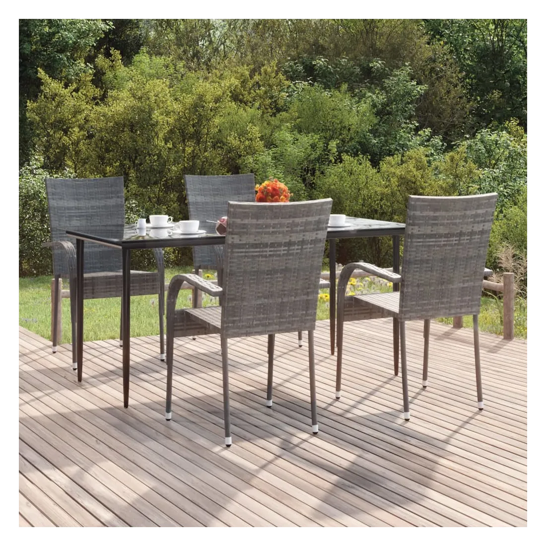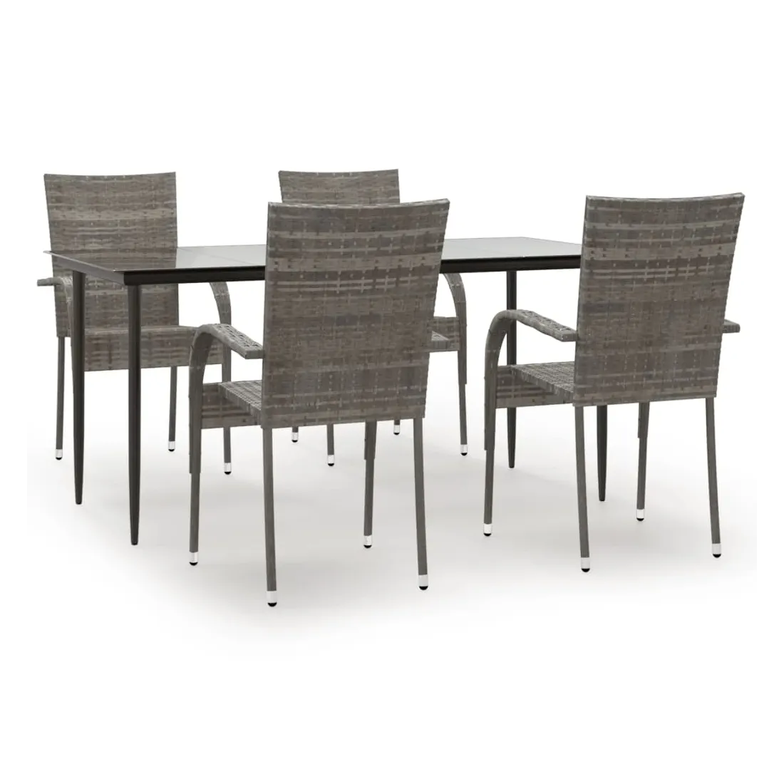 Cet ensemble de salle à manger de jardin est un excellent choix pour manger ou vous détendre dans l'espace extérieur ! Matériau durable : la résine tressée, également connue sous le nom de rotin poly, résiste aux intempéries et est facile à nettoyer. Elle reste belle à l'extérieur pendant une longue période. Elle offre une excellente qualité, commodité et un aspect esthétique.Cadre robuste : les cadres en acier enduit de poudre rendent l'ensemble de salle à manger d'extérieur robuste et stable pour une utilisation quotidienne à l'extérieur.Dessus de table pratique : le dessus lisse de la table de salle à manger est en verre trempé, facile à nettoyer avec un chiffon humide. De plus, le dessus robuste est parfait pour placer des repas, des boissons et d'autres objets décoratifs.Conception flexible : grâce à leur construction légère, ces chaises d'extérieur sont faciles à déplacer et peuvent être empilées pour économiser de l'espace lorsqu'elles ne sont pas utilisées. Remarque :Afin de prolonger la durée de vie de votre mobilier d'extérieur, nous vous recommandons de le protéger avec une housse imperméable.Chaque produit est livré avec un manuel de montage dans la boîte pour un montage facile.