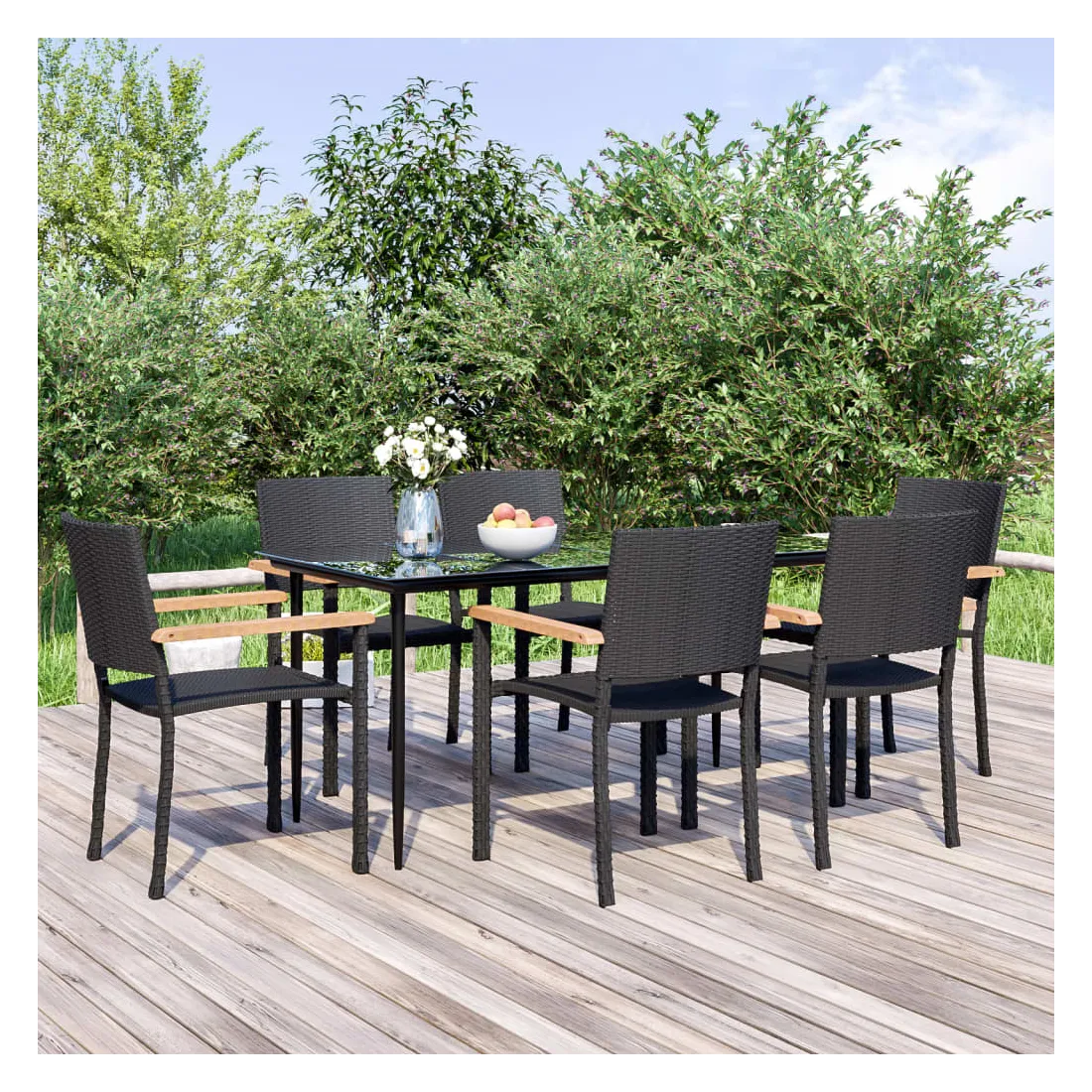 Cet élégant ensemble de salle à manger de jardin est destiné à être le point de mire de votre jardin ou patio ! C'est un excellent choix pour les repas en plein air ou pour vous détendre dans l'espace extérieur ! Matériau durable : la résine tressée, également connue sous le nom de rotin poly, résiste aux intempéries et est facile à nettoyer. Elle reste belle à l'extérieur pendant une longue période. Elle offre une excellente qualité, commodité et un aspect esthétique.Cadre robuste et stable : les cadres en acier enduit de poudre rendent l'ensemble de terrasse robuste et stable pour une utilisation quotidienne à l'extérieur.Dessus de table pratique : le dessus lisse de la table de salle à manger est en verre trempé, facile à nettoyer avec un chiffon humide. De plus, le dessus robuste est parfait pour placer des repas, des boissons et d'autres objets décoratifs.Assise confortable : la chaise de salle à manger est conçue avec un dossier et des accoudoirs pour vous offrir une expérience d'assise confortable. Remarque :Afin de prolonger la durée de vie de votre mobilier d'extérieur, nous vous recommandons de le protéger avec une housse imperméable.Chaque produit est livré avec un manuel de montage dans la boîte pour un montage facile.