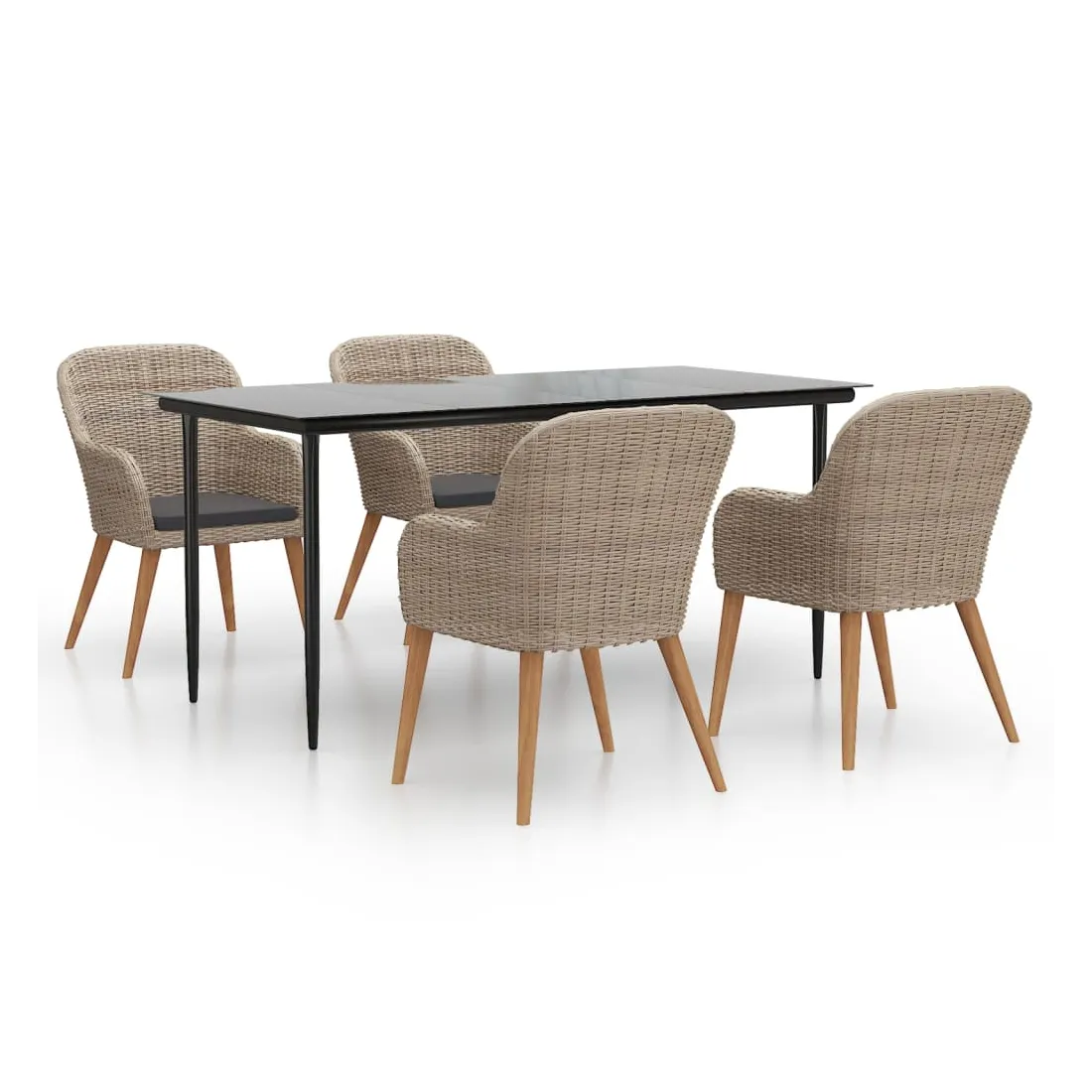 - Matériau : résine tressée, acier enduit de poudre, bois d'acacia massif avec une finition huilée
