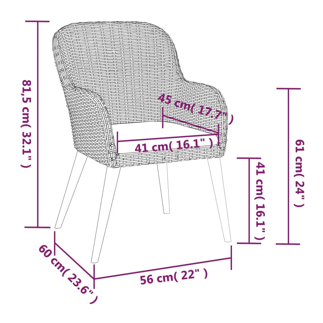 - Hauteur des accoudoirs à partir du sol : 61 cm
