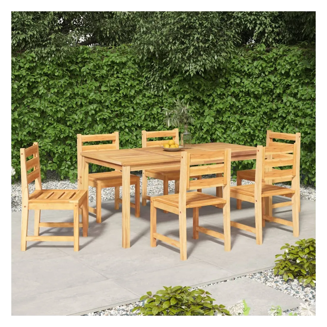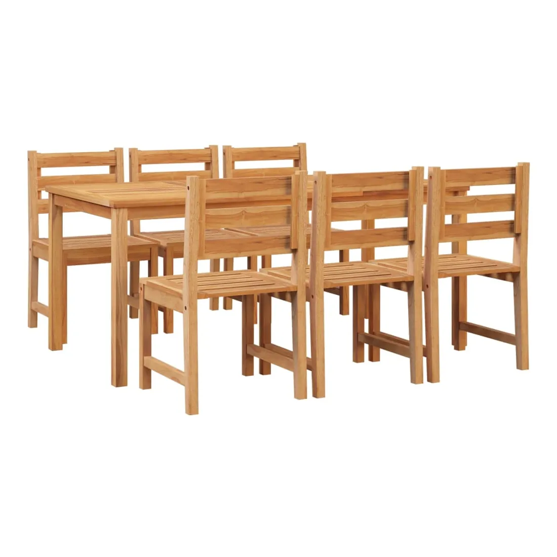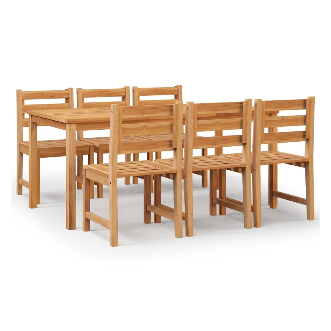 vidaXLCet ensemble de salle à manger de jardin en bois, au design élégant et contemporain, est un excellent choix pour manger ou vous détendre dans le jardin. Bois de teck massif : le bois de teck massif est un matériau naturel magnifique. Il a été chevronné, séché au four, puis sablé finement pour lui donner une apparence très lisse. Le bois de teck est connu pour sa résistance exceptionnelle et sa résistance aux intempéries.Dessus de table robuste : cette table de repas vous offre un dessus de table robuste. Vous pouvez y placer vos collations, tes boissons et toutes vos décorations préférées.Caractéristique résistante à l'eau : grâce à sa caractéristique de résistance à l'eau et à son look classique, vous pouvez placer l'ensemble de meubles de jardin n'importe où autour de votre maison, que ce soit à l'intérieur ou à l'extérieur !Expérience d'assise confortable : chaque chaise de dîner est dotée d'un dossier, ce qui rend l'assise très confortable. Remarque :Chaque produit est livré avec un manuel de montage dans la boîte pour un montage facile.Afin de prolonger la durée de vie de votre mobilier d'extérieur, nous vous recommandons de le protéger avec une housse imperméable.