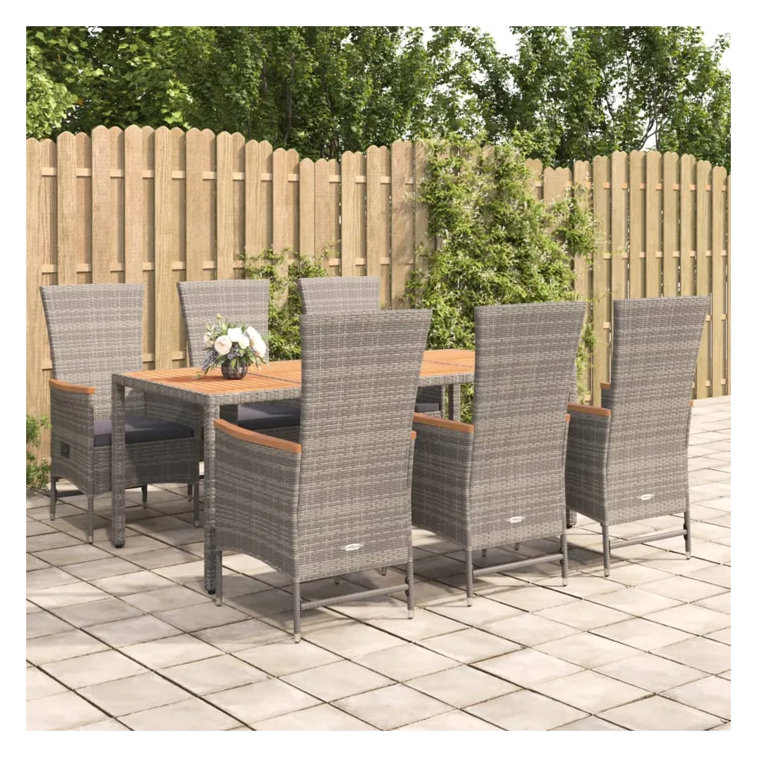 Cet ensemble de salle à manger de jardin tendance, au design élégant et contemporain, est un excellent choix pour manger ou vous détendre dans votre jardin. Matériau résistant aux intempéries : la résine tressée, également connue sous le nom de rotin poly, résiste aux intempéries et est facile à nettoyer. Elle reste belle à l'extérieur pendant une longue période. Elle offre une excellente qualité, commodité et un aspect esthétique.Cadre robuste : les cadres en acier enduit de poudre rendent l'ensemble de salle à manger d'extérieur robuste et stable pour une utilisation quotidienne à l'extérieur.Dessus de table pratique : le dessus de table robuste est parfait pour placer des repas, des boissons et d'autres objets décoratifs.Conception modulaire : l'ensemble de salle à manger de jardin est flexible et facile à déplacer, vous pouvez donc le combiner avec d'autres segments modulaires dans la boutique en ligne pour créer vos propres configurations d'ensemble de salle à manger de jardin !Fonction d'inclinaison : les chaises de jardin sont spécialement conçues avec une fonction d'inclinaison afin que vous puissiez régler le dossier selon votre confort.Expérience d'assise confortable : le dossier ajoute un confort d'assise supplémentaire à la chaise de jardin. De plus, les coussins bien rembourrés vous permettent de vous asseoir confortablement. Bon à savoir :Pour faciliter au maximum le montage, chaque produit est livré avec des instructions. Remarque :Pour que vos meubles d'extérieur restent beaux, nous vous recommandons de les protéger avec une housse imperméable.