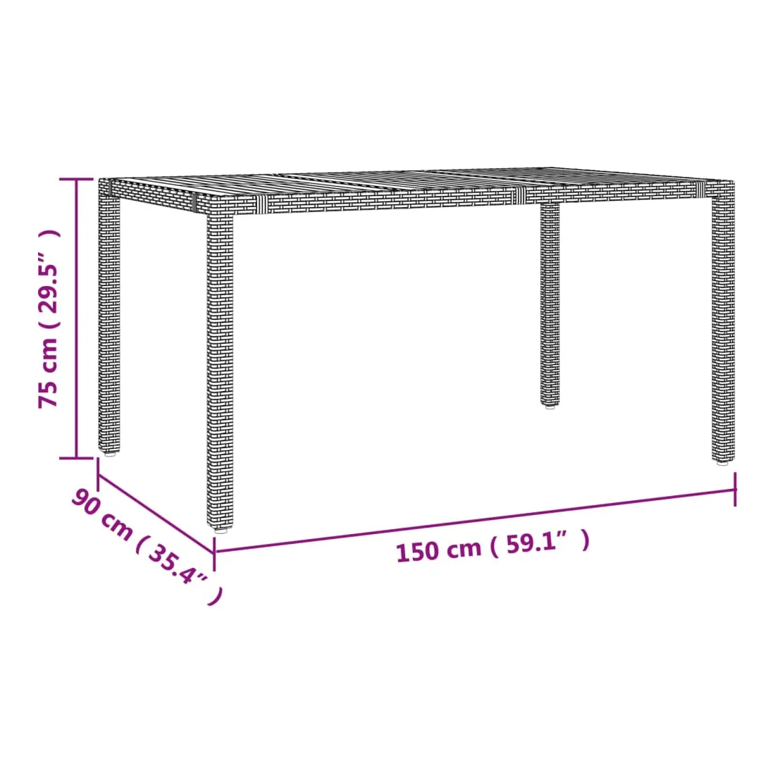 - longueur de table de 150 cm