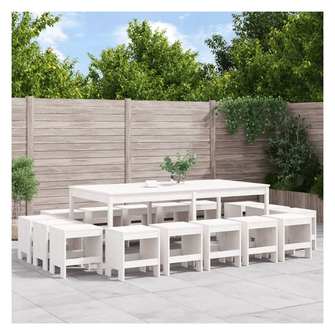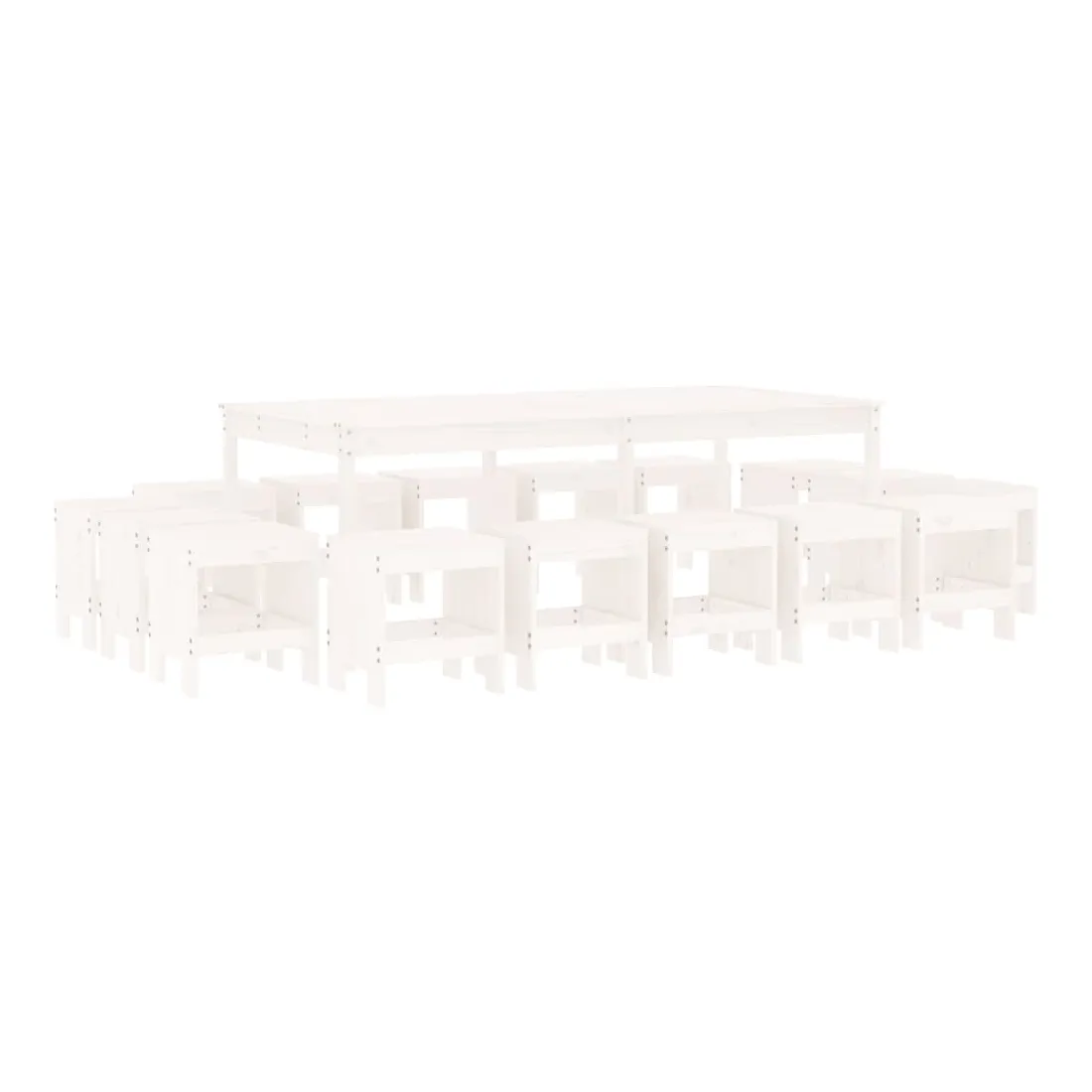 Ensemble à manger de jardin 17 pcs blanc bois massif de pin