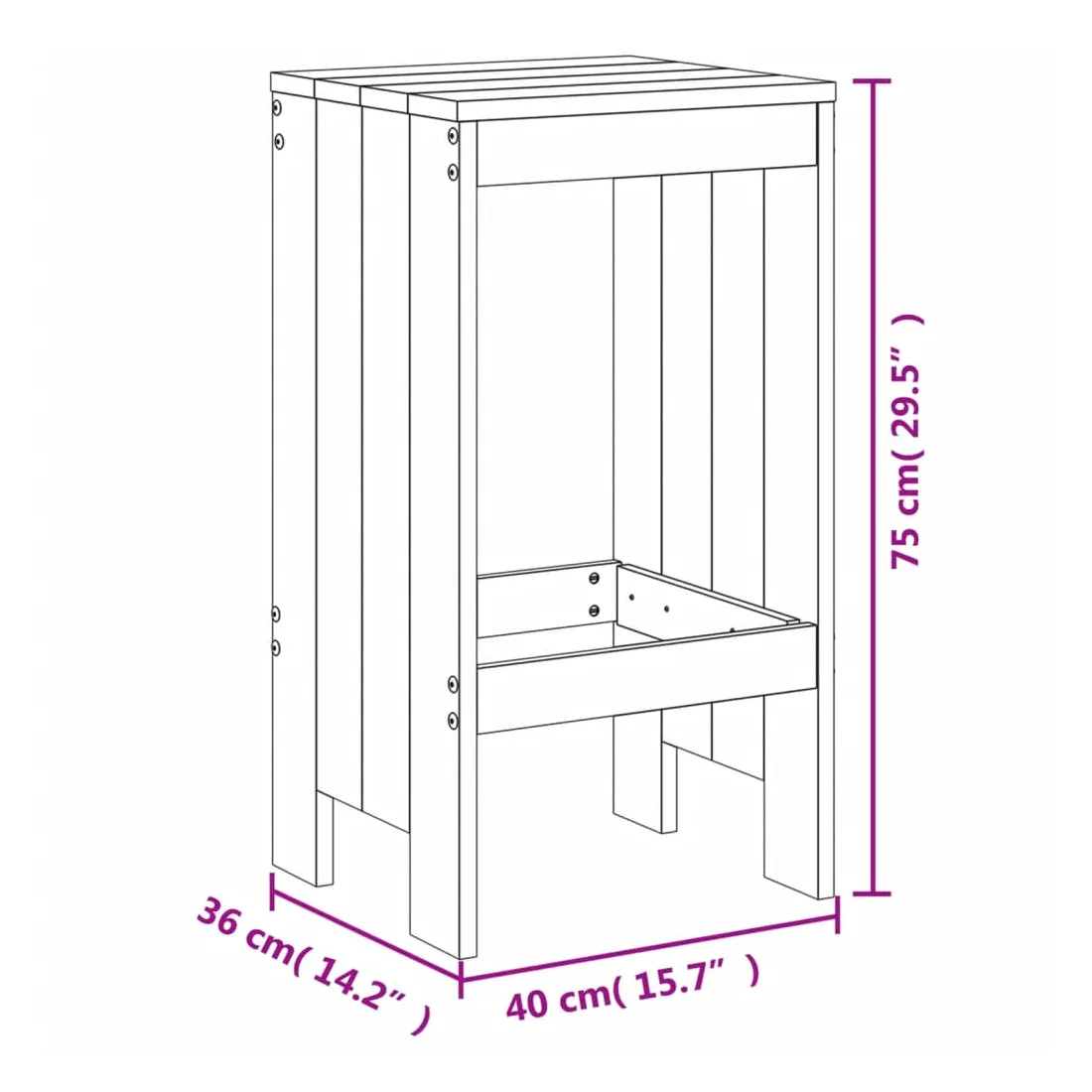 - Dimensions du tabouret de jardin (chacun) : 40 x 36 x 75 cm (L x l x H)