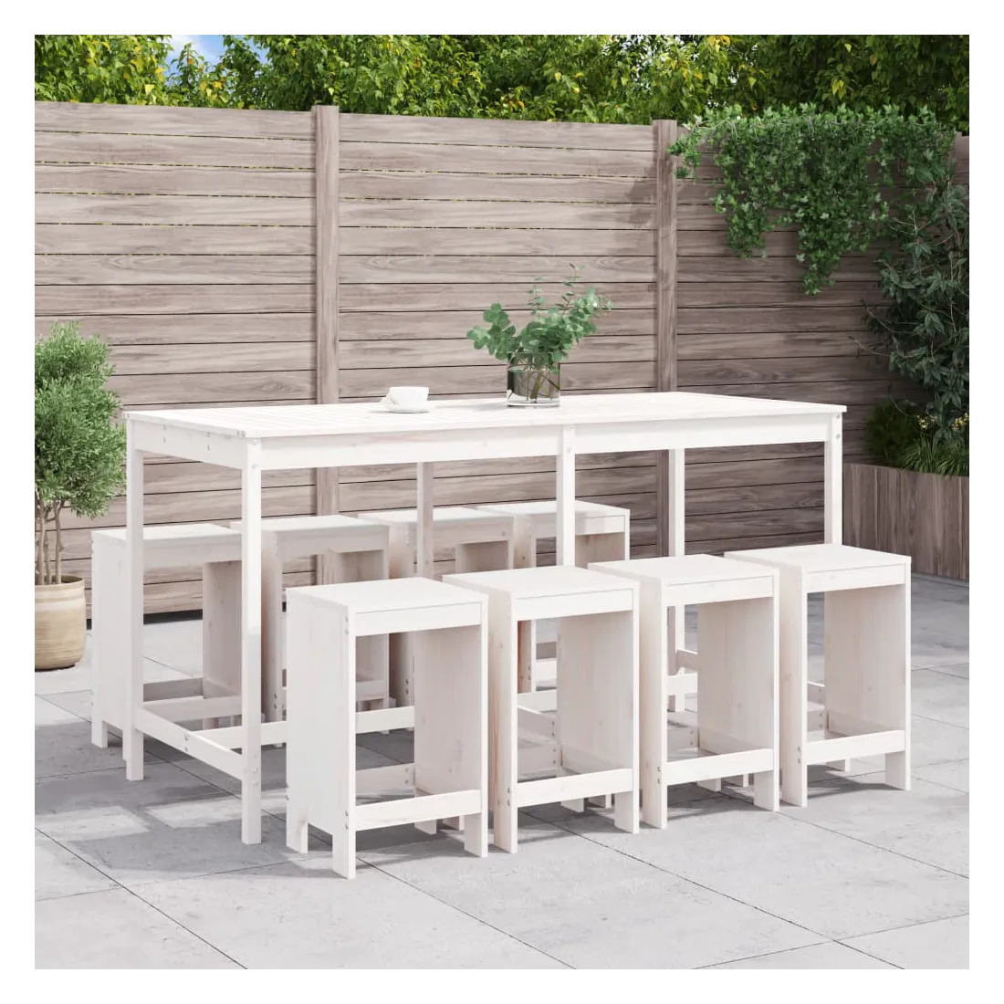 Ensemble de bar de jardin 9 pcs blanc bois de pin massif