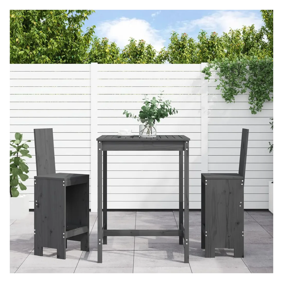 Prenez une gorgée de votre boisson préférée ou profitez d'un bon repas avec votre famille et vos amis autour de cet ensemble de bar de jardin en bois ! Bois de pin massif : cet ensemble de bar est fabriqué en bois de pin massif. le bois de pin massif est un matériau naturel magnifique. Le bois de pin a un grain droit et les nœuds donnent au matériau son aspect caractéristique et rustique.Dessus robuste : la table de bar de l'ensemble de pub est dotée d'un dessus robuste, parfait pour placer vos boissons, vos aliments et autres objets décoratifs.Assise confortable : le dossier et le repose-pieds du tabouret de bar en bois offrent une assise confortable pour détendre votre dos et vos jambes.Nombreuses applications : avec son design minimaliste, l'ensemble de bar de terrasse peut être intégré dans n'importe quel coin du jardin, terrasse, balcon, jardin, etc. Bon à savoir :Pour que vos meubles d'extérieur restent beaux, nous vous recommandons de les protéger avec une housse imperméable.