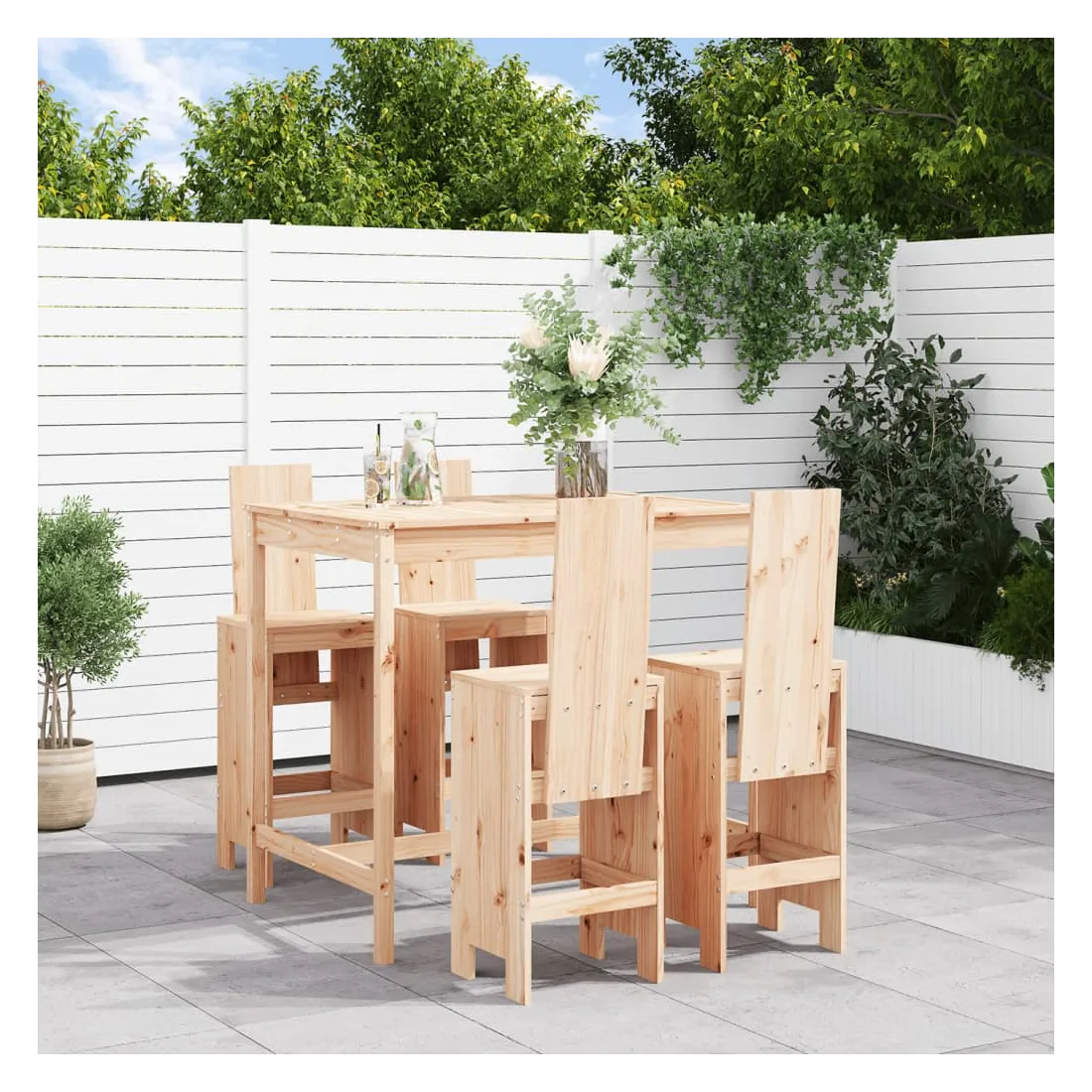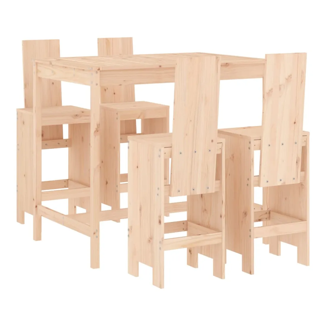 Prenez une gorgée de votre boisson préférée ou profitez d'un bon repas avec votre famille et vos amis autour de cet ensemble de bar de jardin en bois ! Bois de pin massif : cet ensemble de bar est fabriqué en bois de pin massif. le bois de pin massif est un matériau naturel magnifique. Le bois de pin a un grain droit et les nœuds donnent au matériau son aspect caractéristique et rustique.Dessus robuste : la table de bar de l'ensemble de pub est dotée d'un dessus robuste, parfait pour placer vos boissons, vos aliments et autres objets décoratifs.Assise confortable : le dossier et le repose-pieds du tabouret de bar en bois offrent une assise confortable pour détendre votre dos et vos jambes.Nombreuses applications : avec son design minimaliste, l'ensemble de bar de terrasse peut être intégré dans n'importe quel coin du jardin, terrasse, balcon, jardin, etc. Bon à savoir :Pour que vos meubles d'extérieur restent beaux, nous vous recommandons de les protéger avec une housse imperméable.