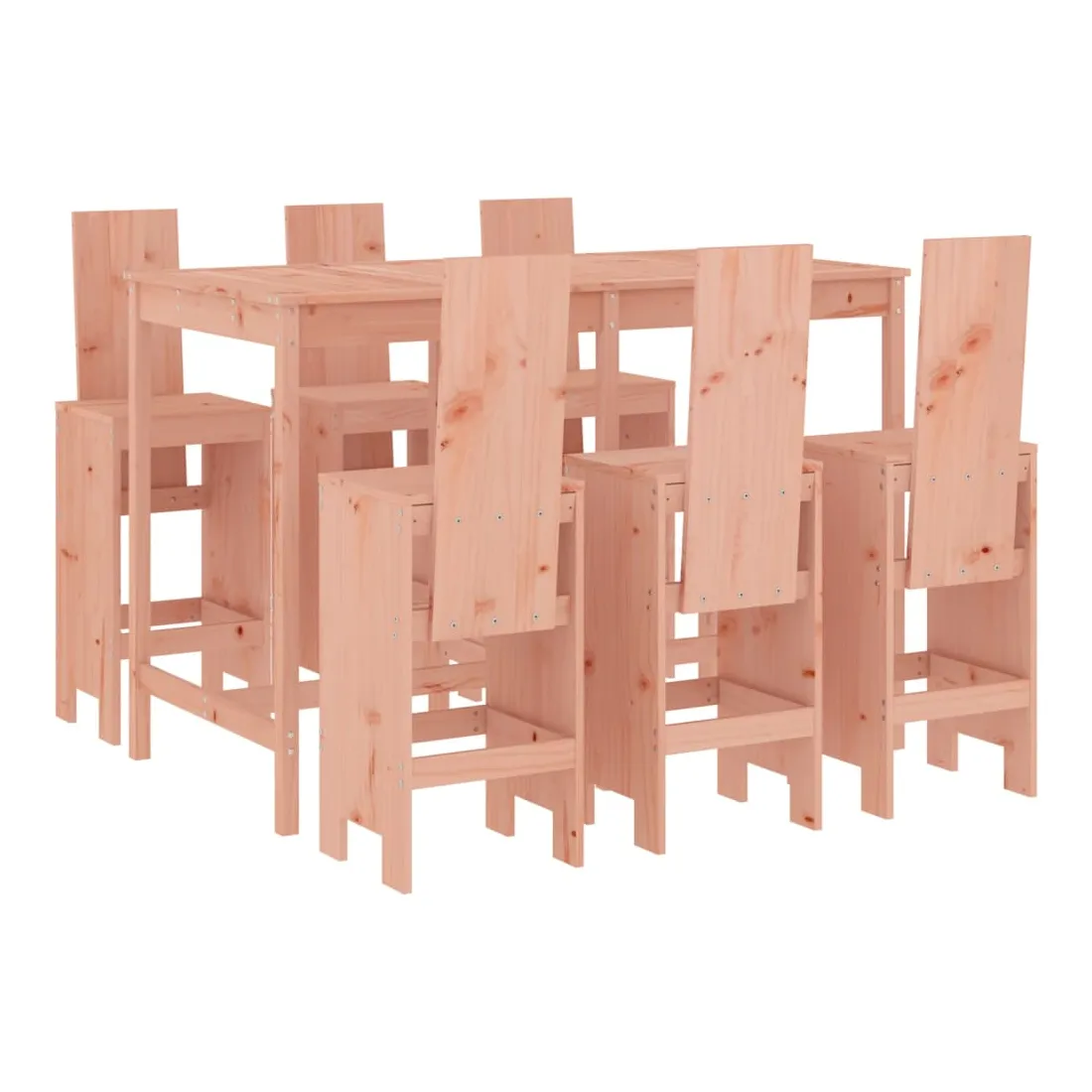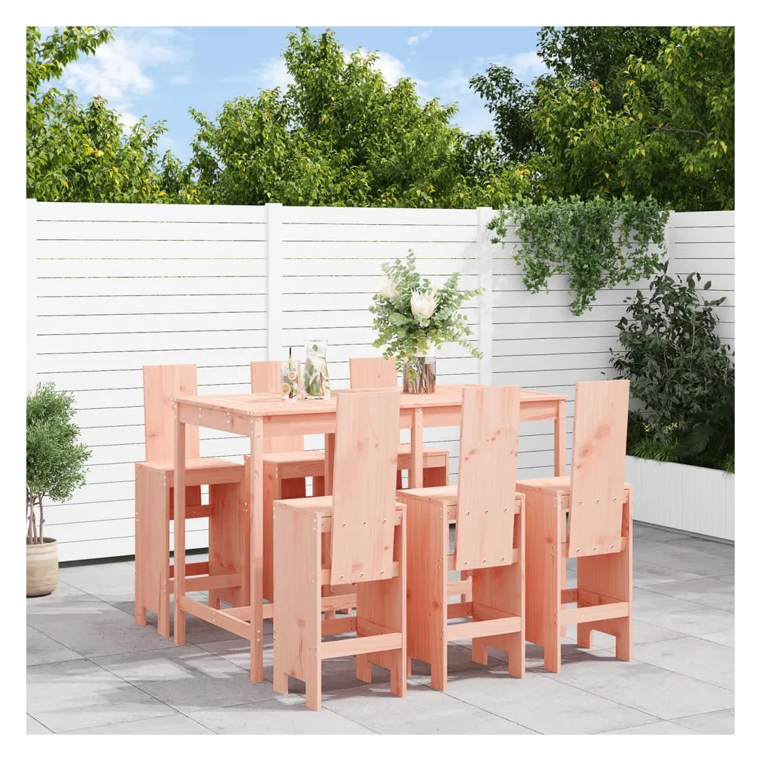 Prenez une gorgée de votre boisson préférée ou profitez d'un bon repas avec votre famille et vos amis autour de cet ensemble de bar de jardin en bois ! Bois de Douglas massif : cet ensemble de bar est fabriqué en bois de Douglas massif. Le bois de Douglas massif est un bois très durable qui fonctionne bien à l'extérieur. Le bois de Douglas est également assez solide pour l'utiliser avec un minimum de soins, même sous l'influence des intempéries.Dessus robuste : la table de bar de l'ensemble de pub est dotée d'un dessus robuste, parfait pour placer vos boissons, vos aliments et autres objets décoratifs.Assise confortable : le dossier et le repose-pieds du tabouret de bar en bois offrent une assise confortable pour détendre votre dos et vos jambes.Nombreuses applications : avec son design minimaliste, l'ensemble de bar de terrasse peut être intégré dans n'importe quel coin du jardin, terrasse, balcon, jardin, etc. Bon à savoir :Pour que vos meubles d'extérieur restent beaux, nous vous recommandons de les protéger avec une housse imperméable.