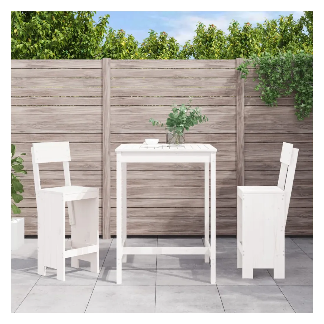 Prenez une gorgée de votre boisson préférée ou profitez d'un bon repas avec votre famille et vos amis autour de cet ensemble de bar de jardin en bois ! Bois de pin massif : cet ensemble de bar est fabriqué en bois de pin massif. le bois de pin massif est un matériau naturel magnifique. Le bois de pin a un grain droit et les nœuds donnent au matériau son aspect caractéristique et rustique.Dessus robuste : la table de bar de l'ensemble de pub est dotée d'un dessus robuste, parfait pour placer vos boissons, vos aliments et autres objets décoratifs.Assise confortable : le dossier et le repose-pieds du tabouret de bar en bois offrent une assise confortable pour détendre votre dos et vos jambes.Nombreuses applications : avec son design minimaliste, l'ensemble de bar de terrasse peut être intégré dans n'importe quel coin du jardin, terrasse, balcon, jardin, etc. Bon à savoir :Pour que vos meubles d'extérieur restent beaux, nous vous recommandons de les protéger avec une housse imperméable.