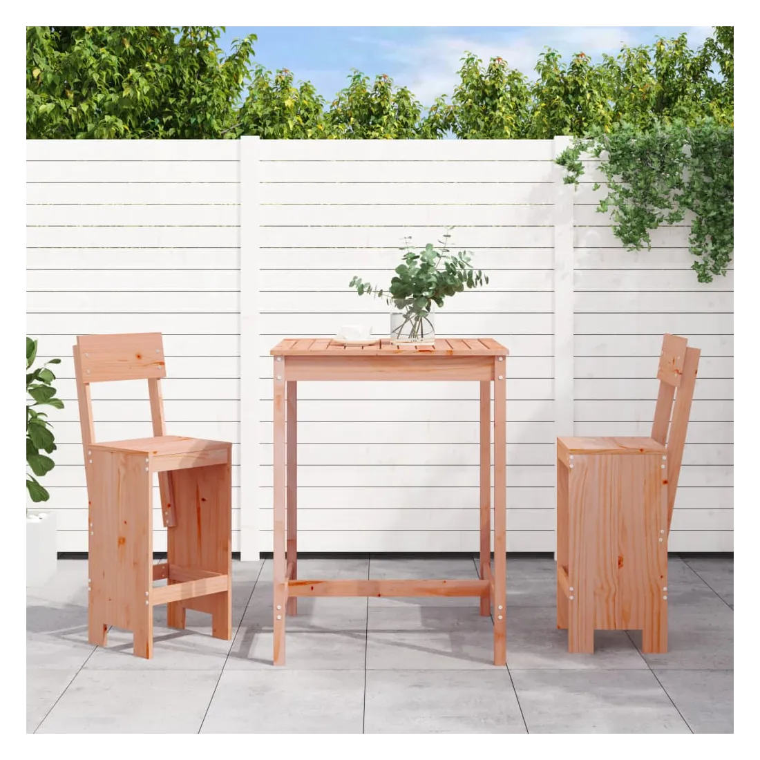 Prenez une gorgée de votre boisson préférée ou profitez d'un bon repas avec votre famille et vos amis autour de cet ensemble de bar de jardin en bois ! Bois de Douglas massif : cet ensemble de bar est fabriqué en bois de Douglas massif. Le bois de Douglas massif est un bois très durable qui fonctionne bien à l'extérieur. Le bois de Douglas est également assez solide pour l'utiliser avec un minimum de soins, même sous l'influence des intempéries.Dessus robuste : la table de bar de l'ensemble de pub est dotée d'un dessus robuste, parfait pour placer vos boissons, vos aliments et autres objets décoratifs.Assise confortable : le dossier et le repose-pieds du tabouret de bar en bois offrent une assise confortable pour détendre votre dos et vos jambes.Nombreuses applications : avec son design minimaliste, l'ensemble de bar de terrasse peut être intégré dans n'importe quel coin du jardin, terrasse, balcon, jardin, etc. Bon à savoir :Pour que vos meubles d'extérieur restent beaux, nous vous recommandons de les protéger avec une housse imperméable.