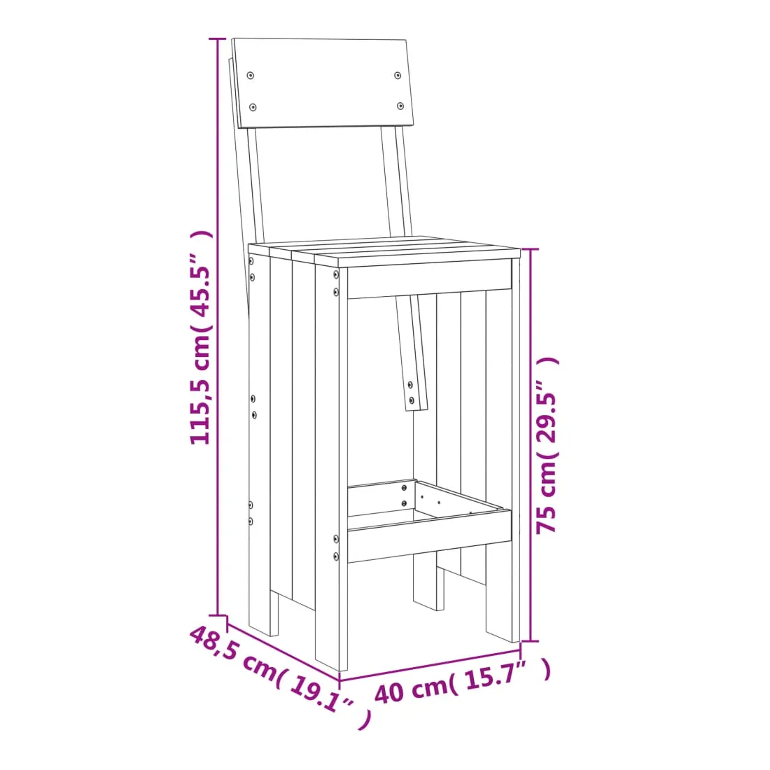 - Dimensions du tabouret de bar (chacun) : 40 x 48,5 x 115,5 cm (L x l x H)