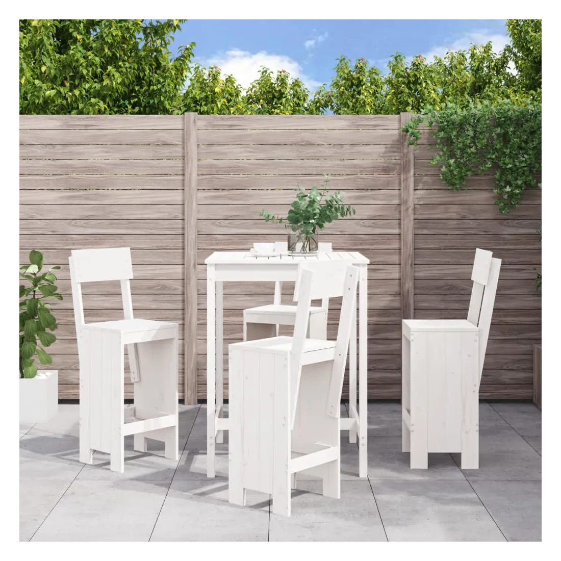 Prenez une gorgée de votre boisson préférée ou profitez d'un bon repas avec votre famille et vos amis autour de cet ensemble de bar de jardin en bois ! Bois de pin massif : cet ensemble de bar est fabriqué en bois de pin massif. le bois de pin massif est un matériau naturel magnifique. Le bois de pin a un grain droit et les nœuds donnent au matériau son aspect caractéristique et rustique.Dessus robuste : la table de bar de l'ensemble de pub est dotée d'un dessus robuste, parfait pour placer vos boissons, vos aliments et autres objets décoratifs.Assise confortable : le dossier et le repose-pieds du tabouret de bar en bois offrent une assise confortable pour détendre votre dos et vos jambes.Nombreuses applications : avec son design minimaliste, l'ensemble de bar de terrasse peut être intégré dans n'importe quel coin du jardin, terrasse, balcon, jardin, etc. Bon à savoir :Pour que vos meubles d'extérieur restent beaux, nous vous recommandons de les protéger avec une housse imperméable.
